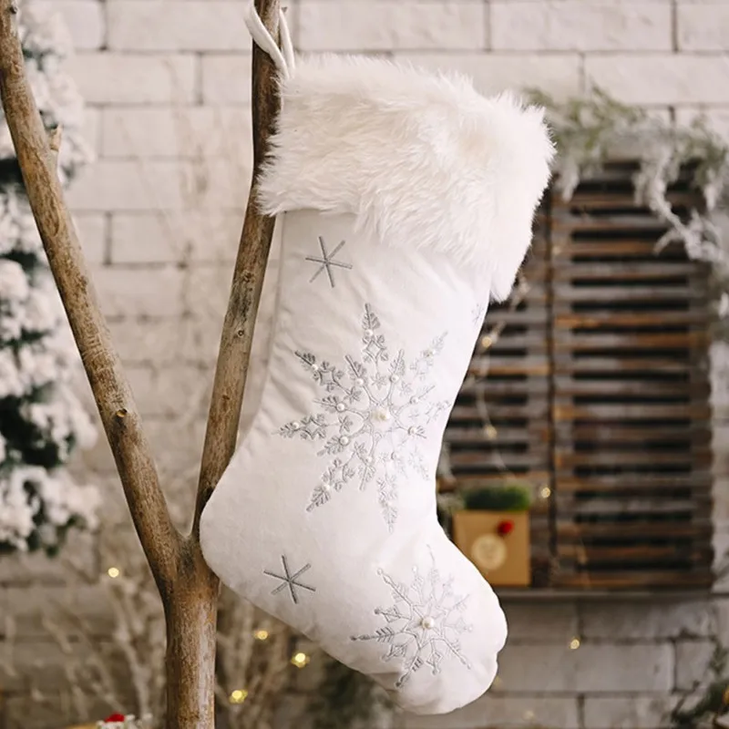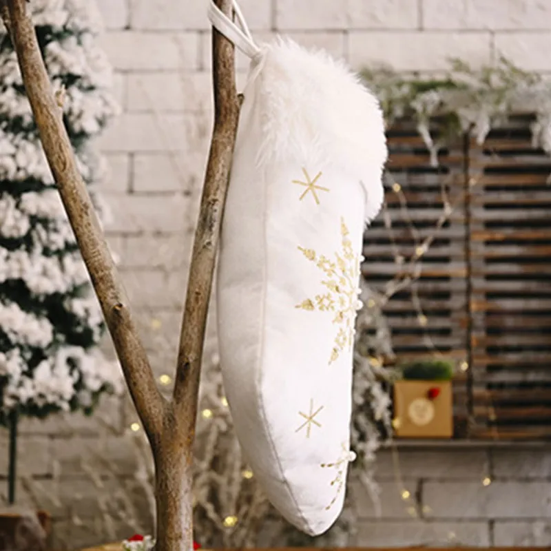 1/2pcs White Plush Stamping Gold Silver Embroidery Snowflake Christmas Stocking Merry Christmas Decor For Home Xmas Gift Socks