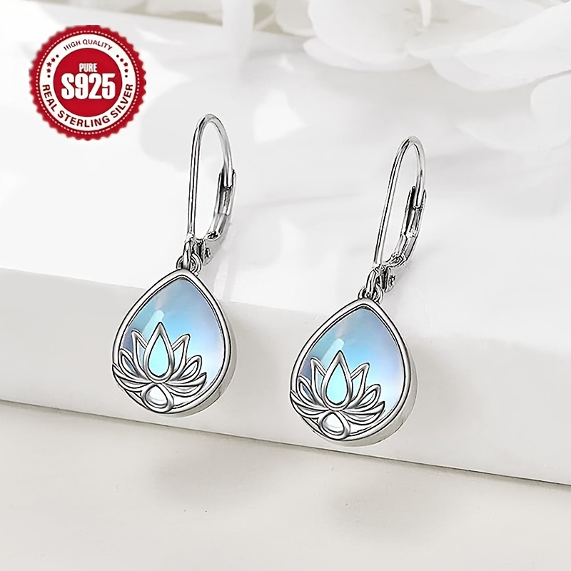 1 Pair of Exquisite 925 Sterling Silvery Flower Pendant Earrings Inlaid with Moonstones - Elegant Women's Jewelry for Engagements, Weddings, and Dinners - Luxurious and Ideal Decorative Gifts