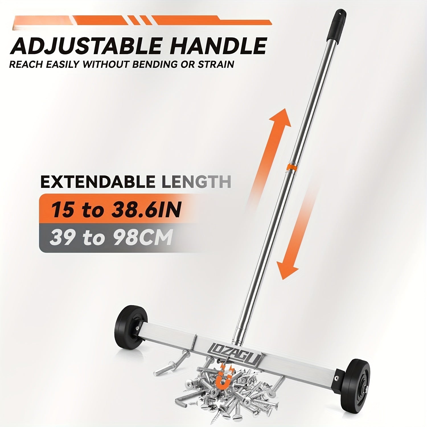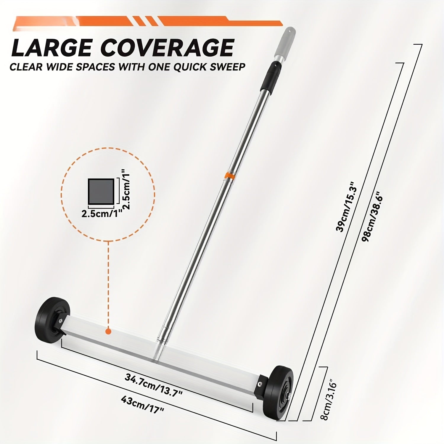 17" Heavy Duty Magnetic Sweeper with Telescoping Handle & Wheels - 8.8 lbs Pull Force, Ergonomic Grip, Compact Design for Home, Garage, Workshop - Durable Metal Construction, Magnetic Sweeper for Metal Debris, Garage Cleaning