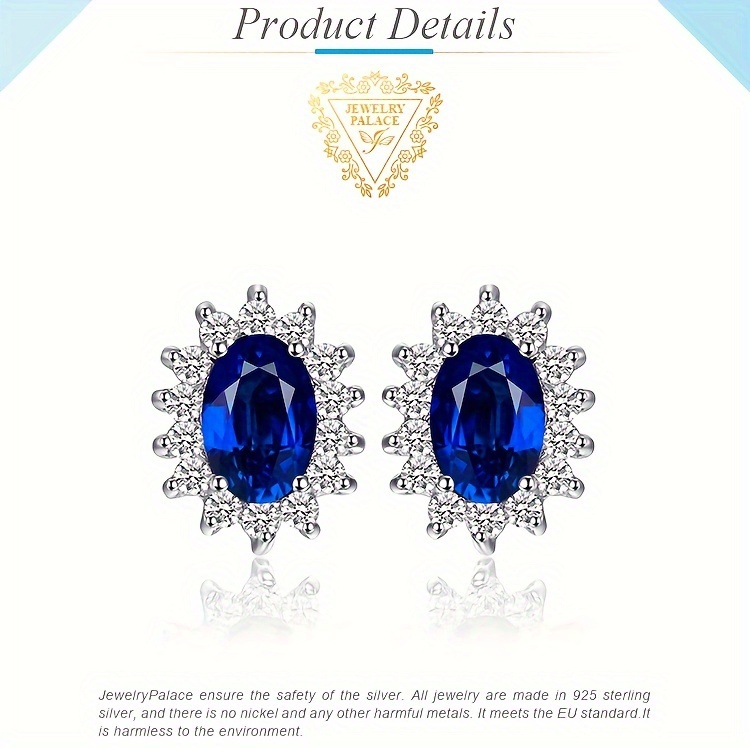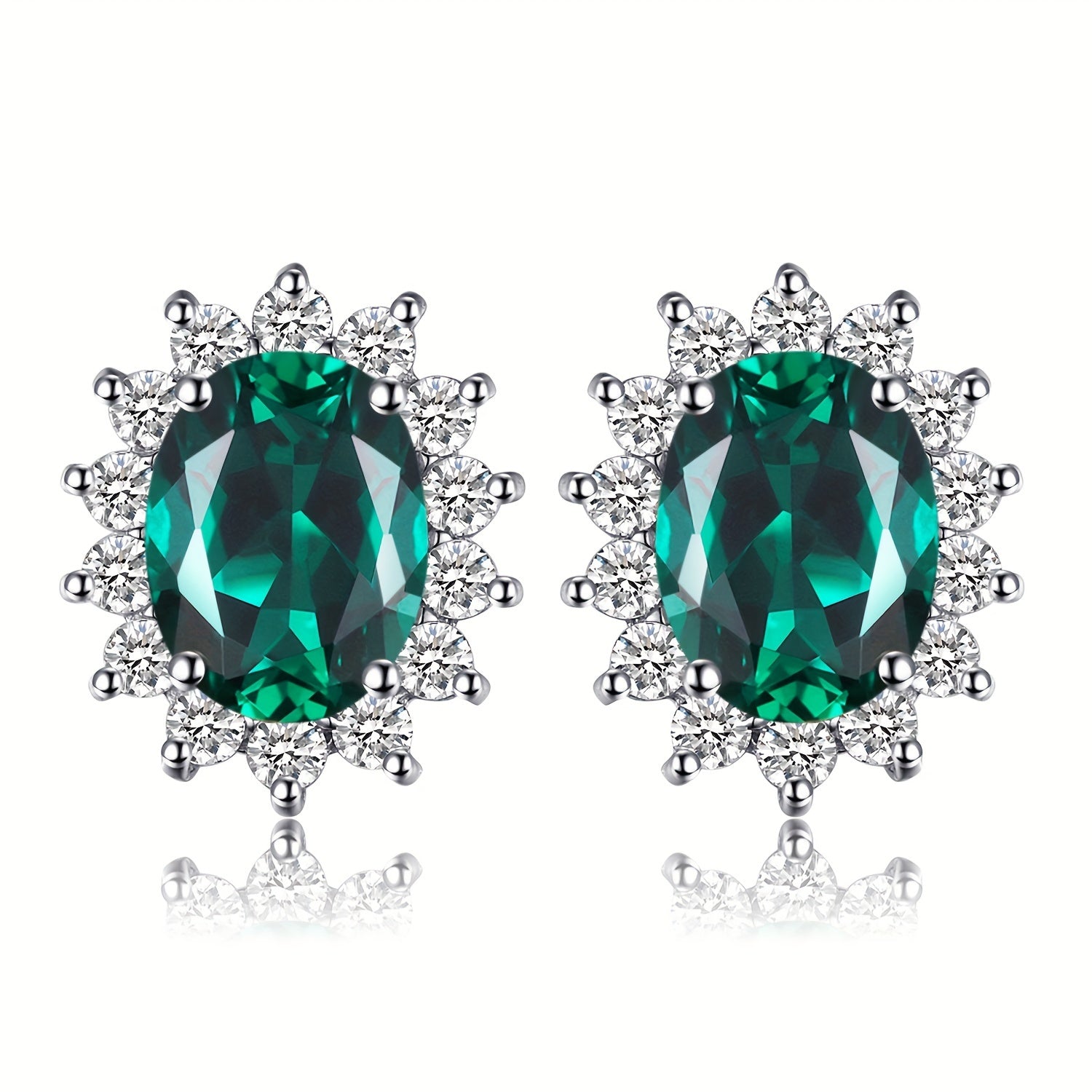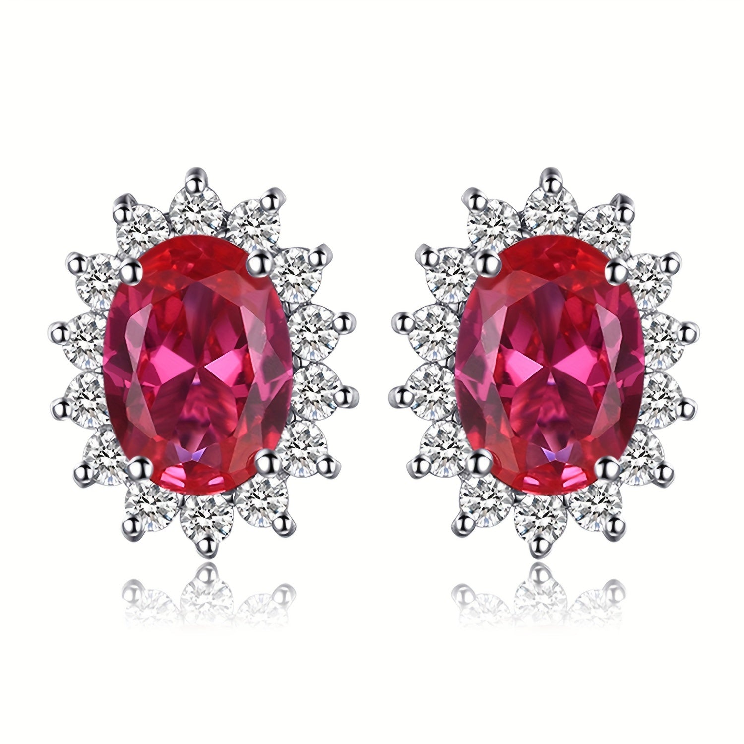 1pair 925 Sterling Silver Glamorous And Elegant Classic Diana Design Exquisite Oval Cut Created Gemstone Birthstone Silvery Stud Earrings For Women For Prom Party Banquet For Dating Gift Fine Jewelry