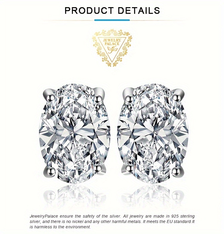1pair Moissanite 925 Sterling Silver Classic And Elegant Oval Cut Total 2ct Moissanite Silver Earirngs for Woman for Girl for Wedding Engagement Jewelry, 1ct/side. Fine Jewelry Perfect for Daily Decoration for Dating Gift