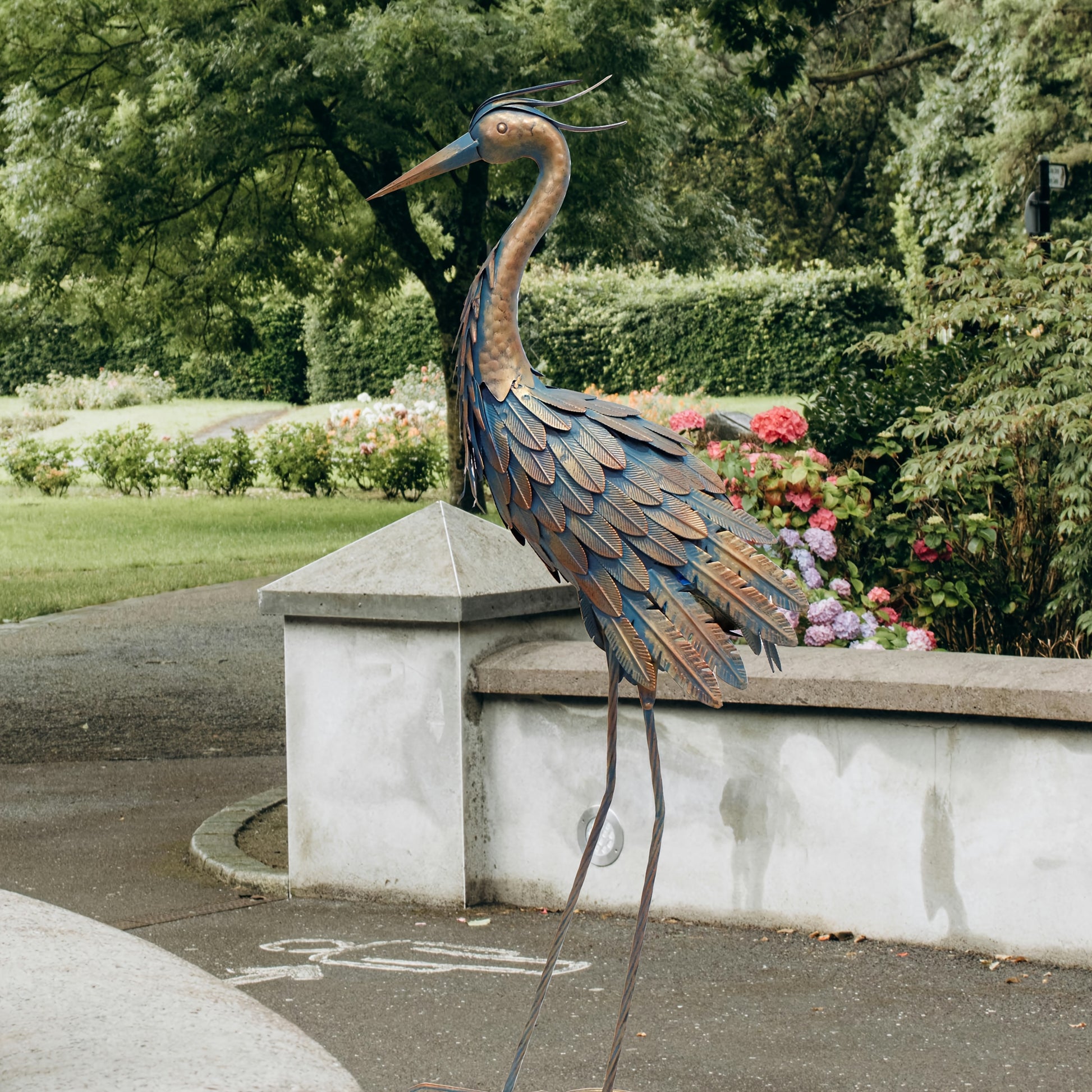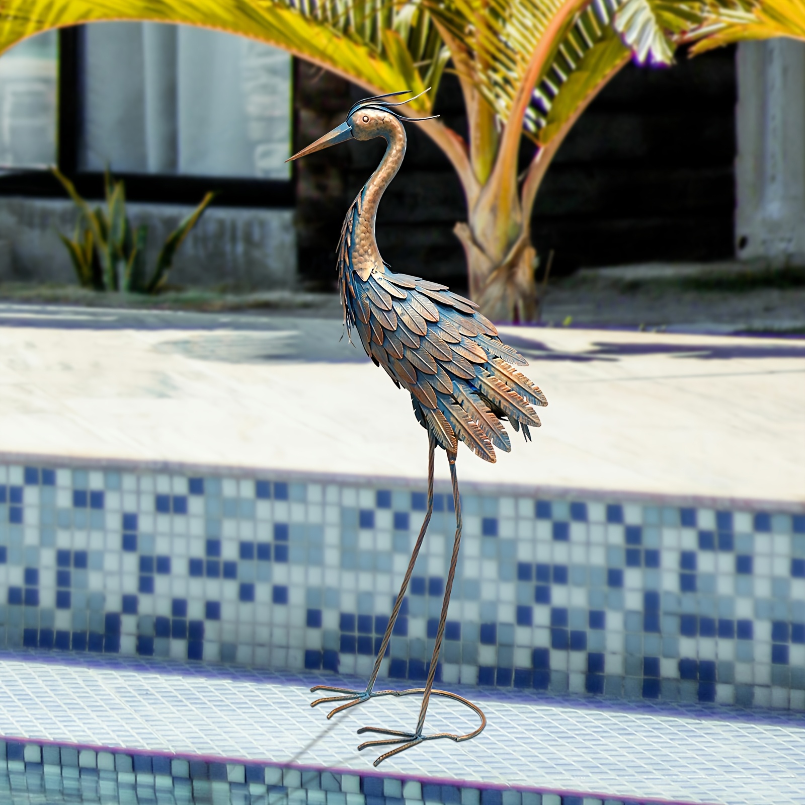 1pc 38-inch Metal Heron Garden Statue - Rustic Outdoor Bird Sculpture with Vibrant Blue & Copper Finish, Durable Yard Art Decor for Garden, Backyard, Patio, Porch - Thanksgiving & Spring Summer Decoration, No Electricity Need