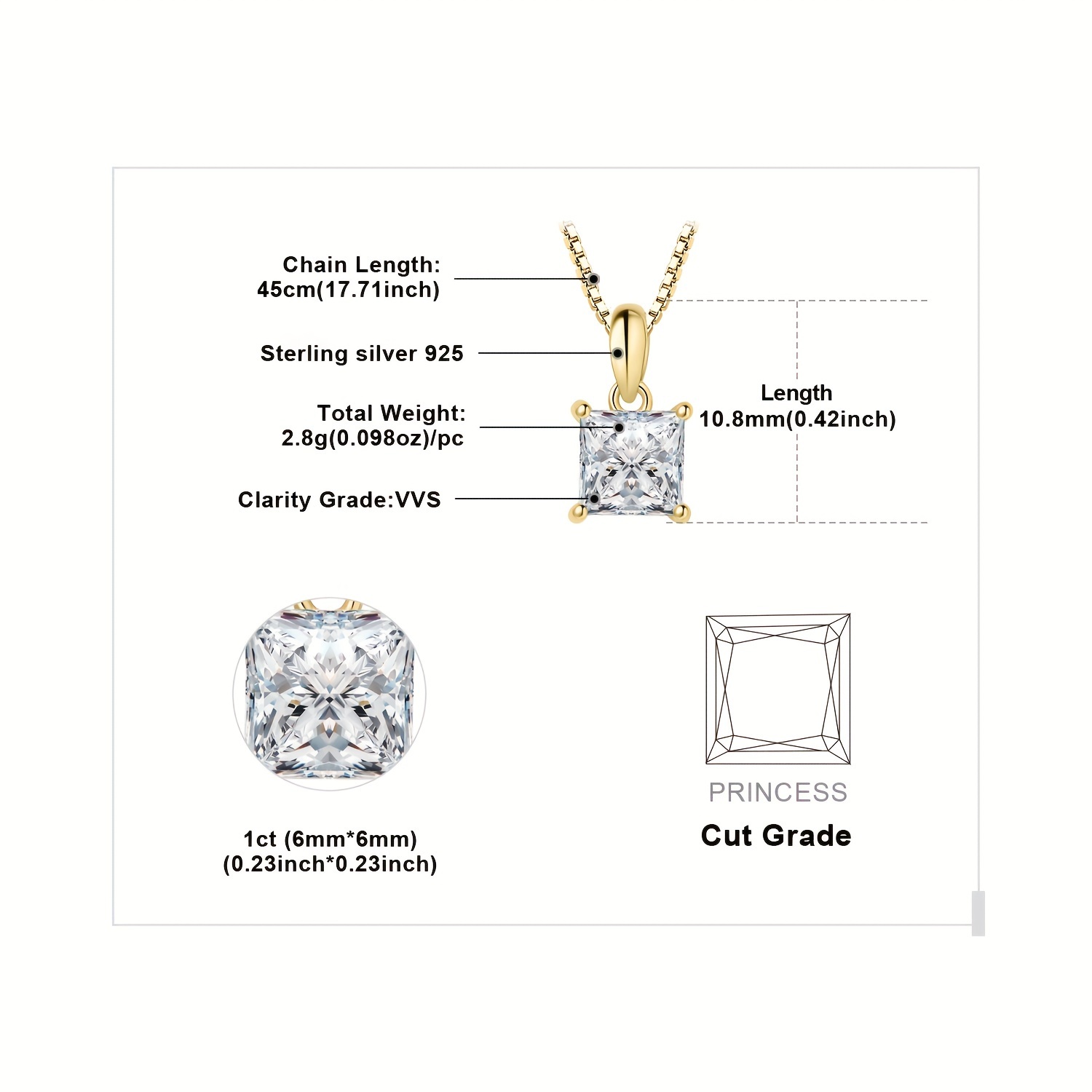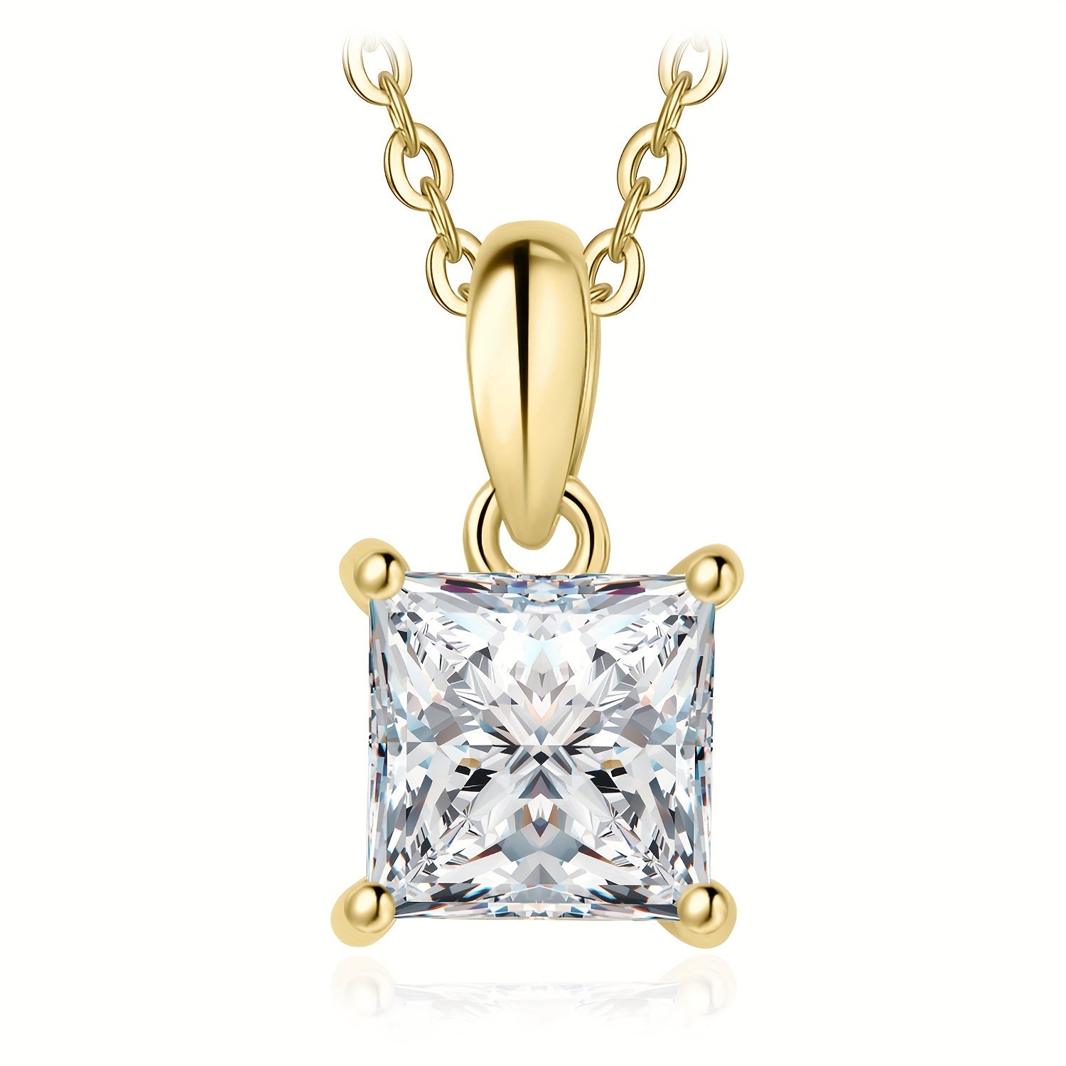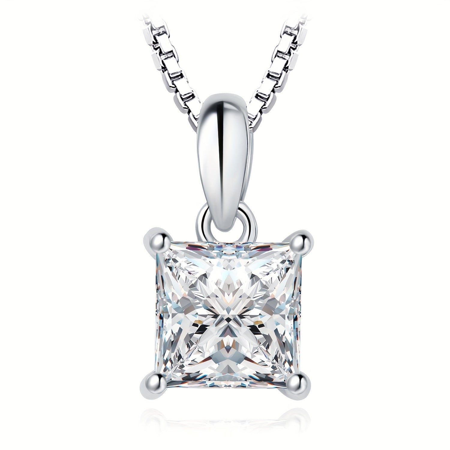 1pc 925 Sterling Silver Simple And Elegant Exquisite Multi-faceted Princess Cut Synthetic Cubic Zirconia Silver Pendant Necklace for Women for Girl Perfect for Dating Gift for Daily Decoration Wedding Engagement Fine Jewelry