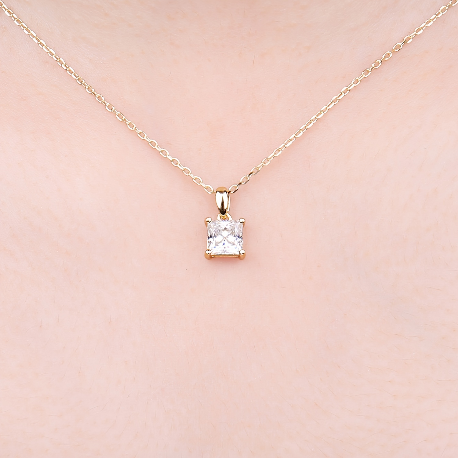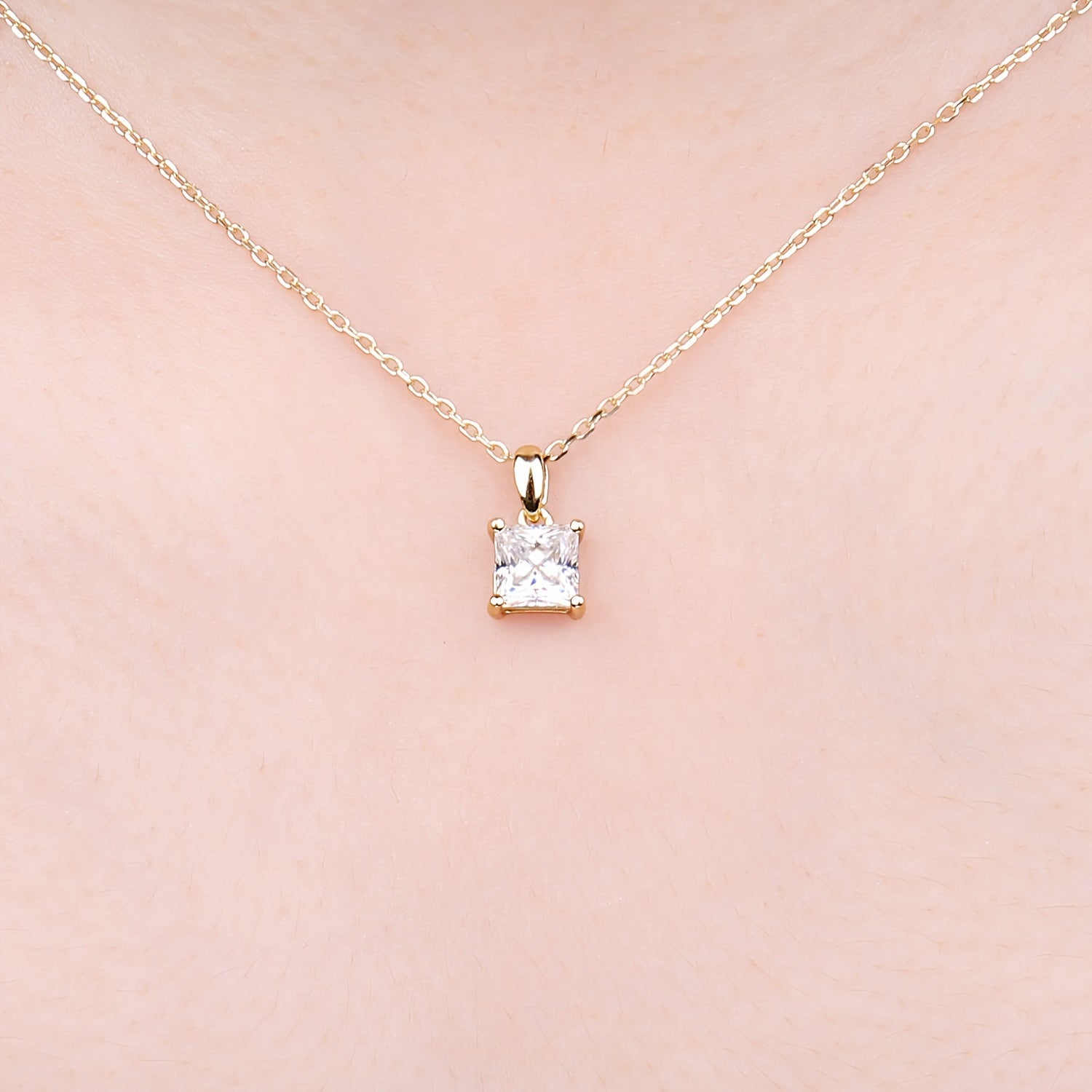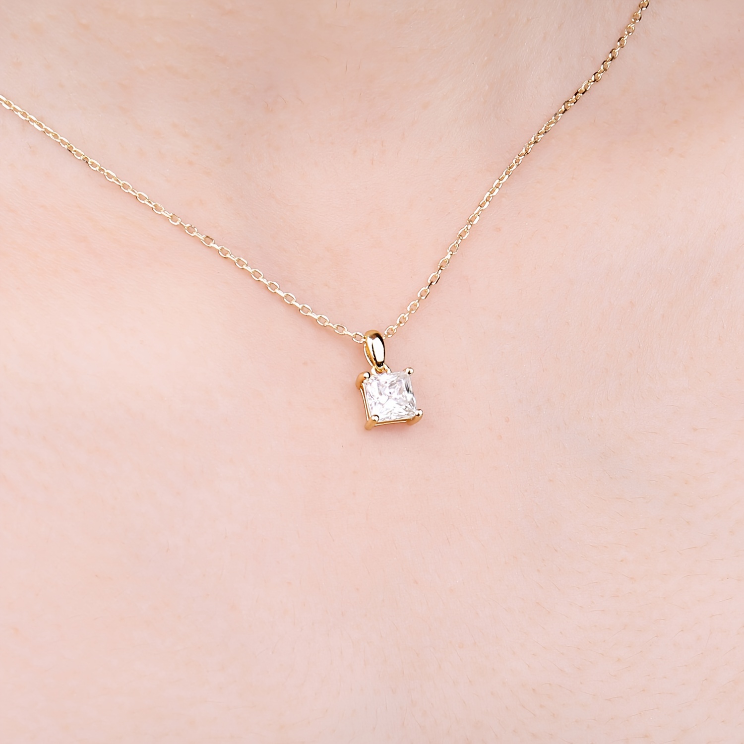 1pc 925 Sterling Silver Simple And Elegant Exquisite Multi-faceted Princess Cut Synthetic Cubic Zirconia Silver Pendant Necklace for Women for Girl Perfect for Dating Gift for Daily Decoration Wedding Engagement Fine Jewelry