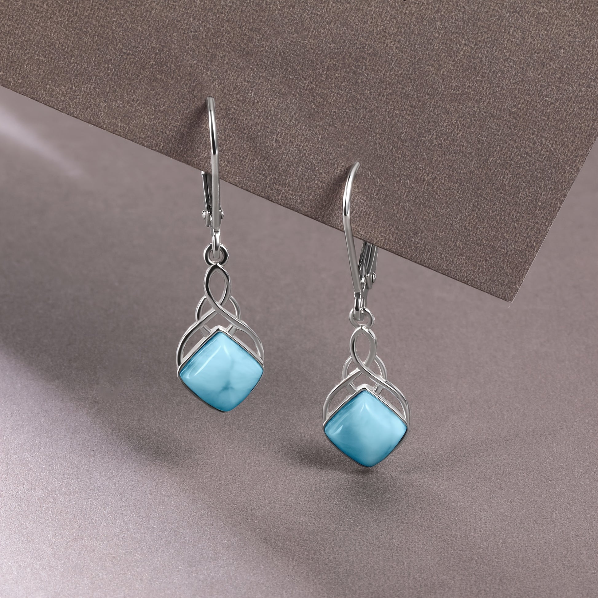 1pc Elegant S925 Sterling Silver Larimar Stone Earrings, Perfect Jewelry Gift for Men And Women, Suitable for Daily Wear Party Vacation Wedding Anniversary, Ideal Christmas Birthday Anniversary Gift