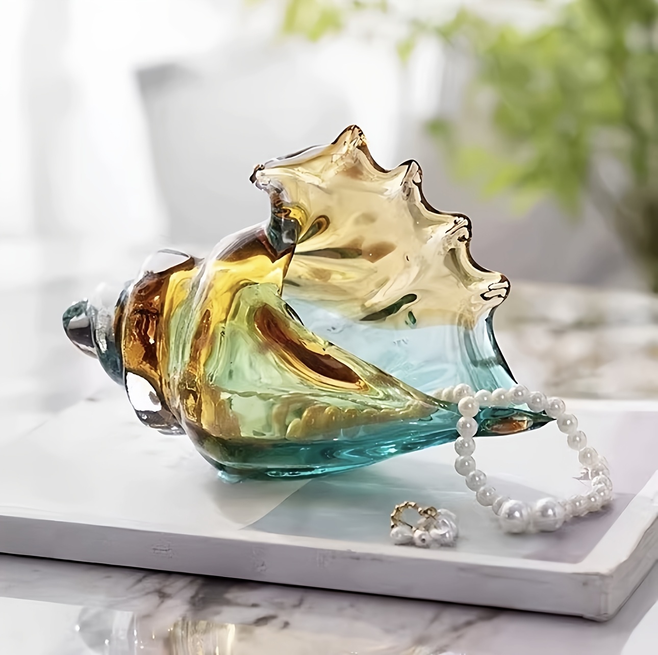 1pc Glass Conch Shell Figurine, Coastal Home Decor Navy Blue, for Living Room/Offices Desktop Decor