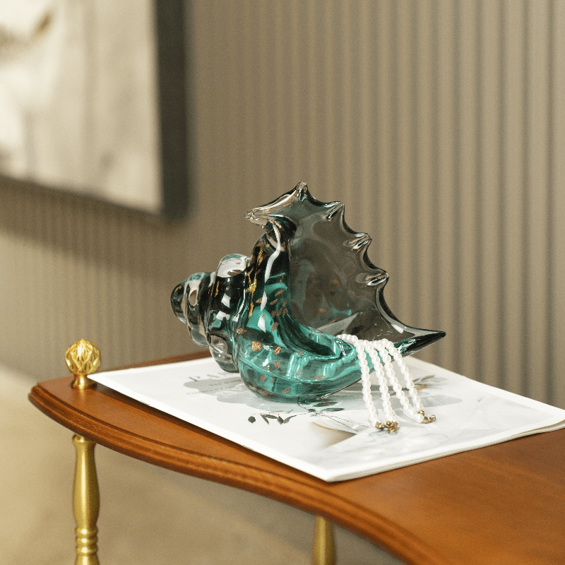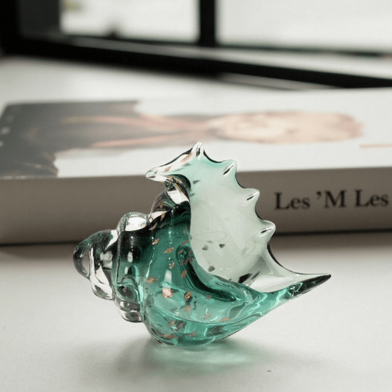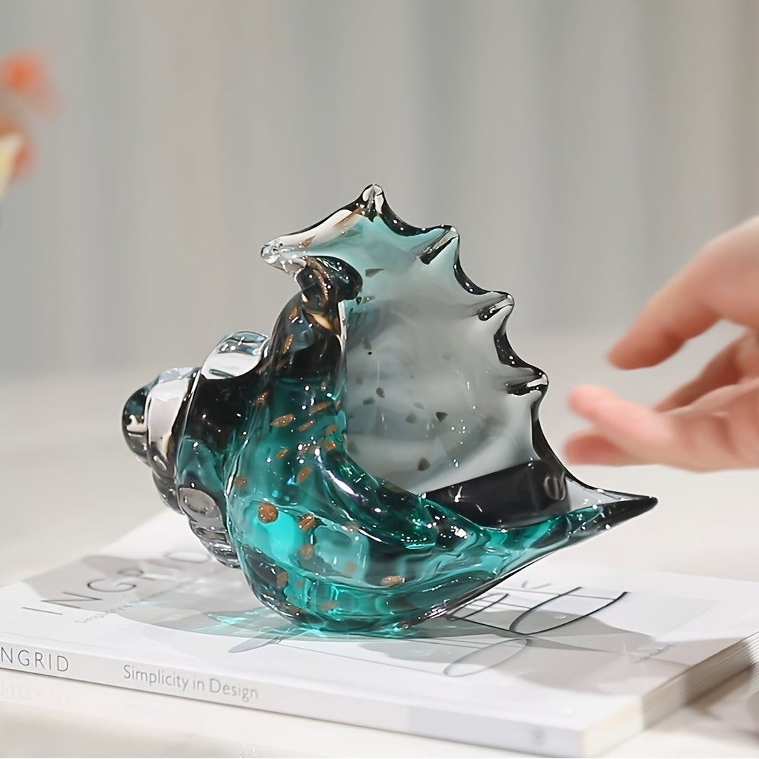 1pc green glass conch, Office storage glass seashells, marine animal storage ornaments, home decoration creative art collection sculptures, beach gifts, birthday gifts for beach enthusiasts