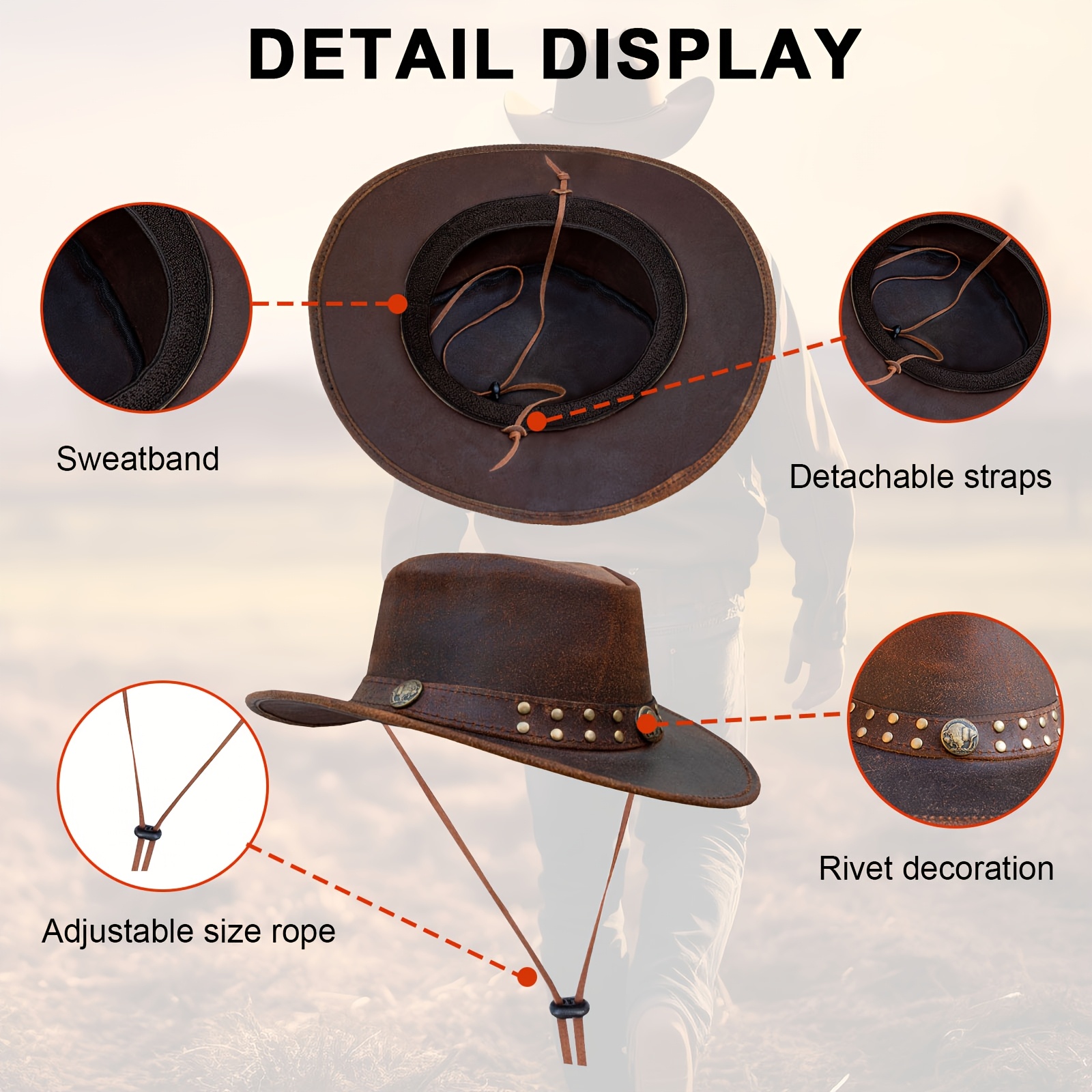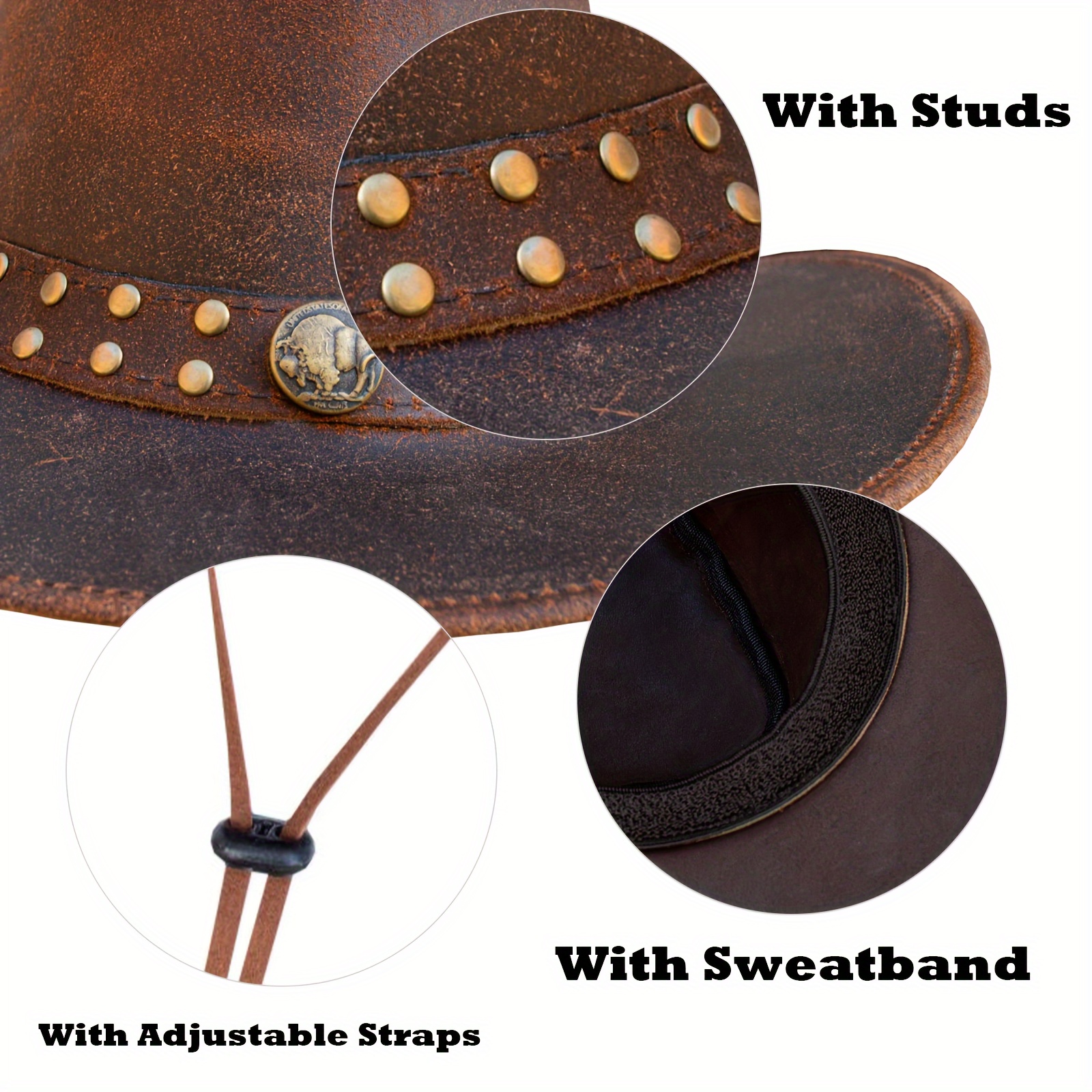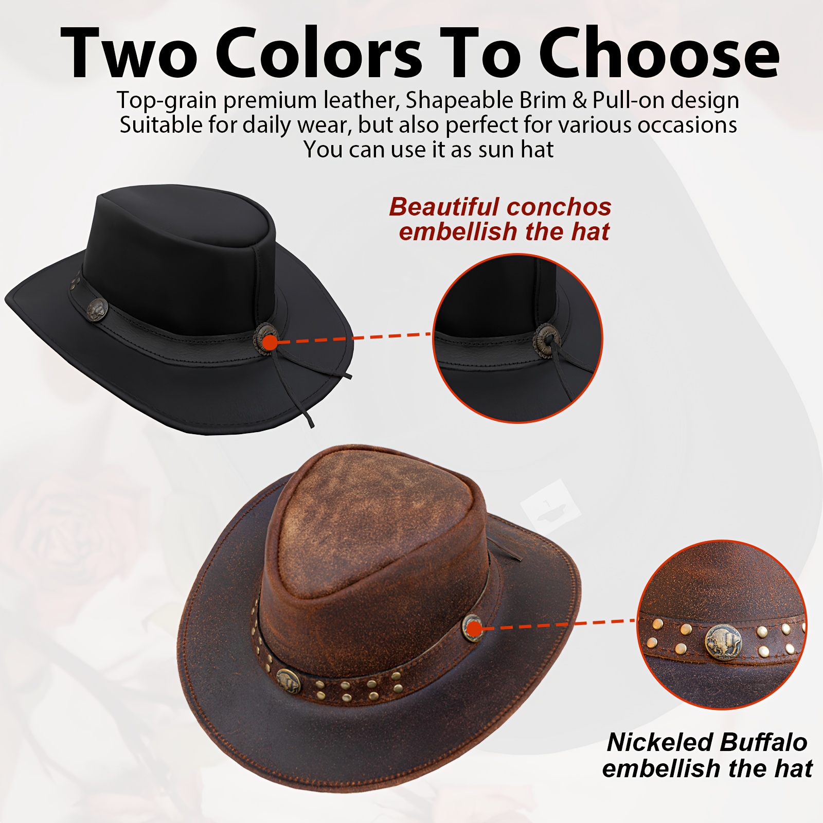 1pc SideWinder Australian Cowboy Leather Hat Unisex Adult For Men And Women Shapeable Outback Western Style Wide Brim, Lightweight Top-Grain Leather, High Quality &, Adjustable Chin Cord, Festival Accessory, Unisex Outdoor He