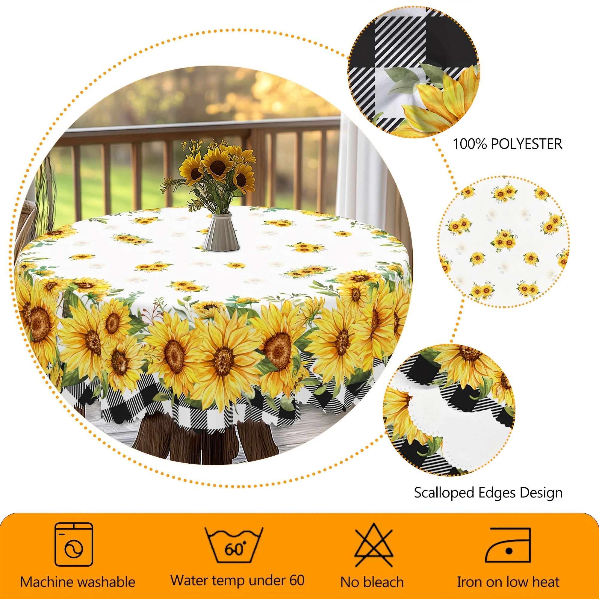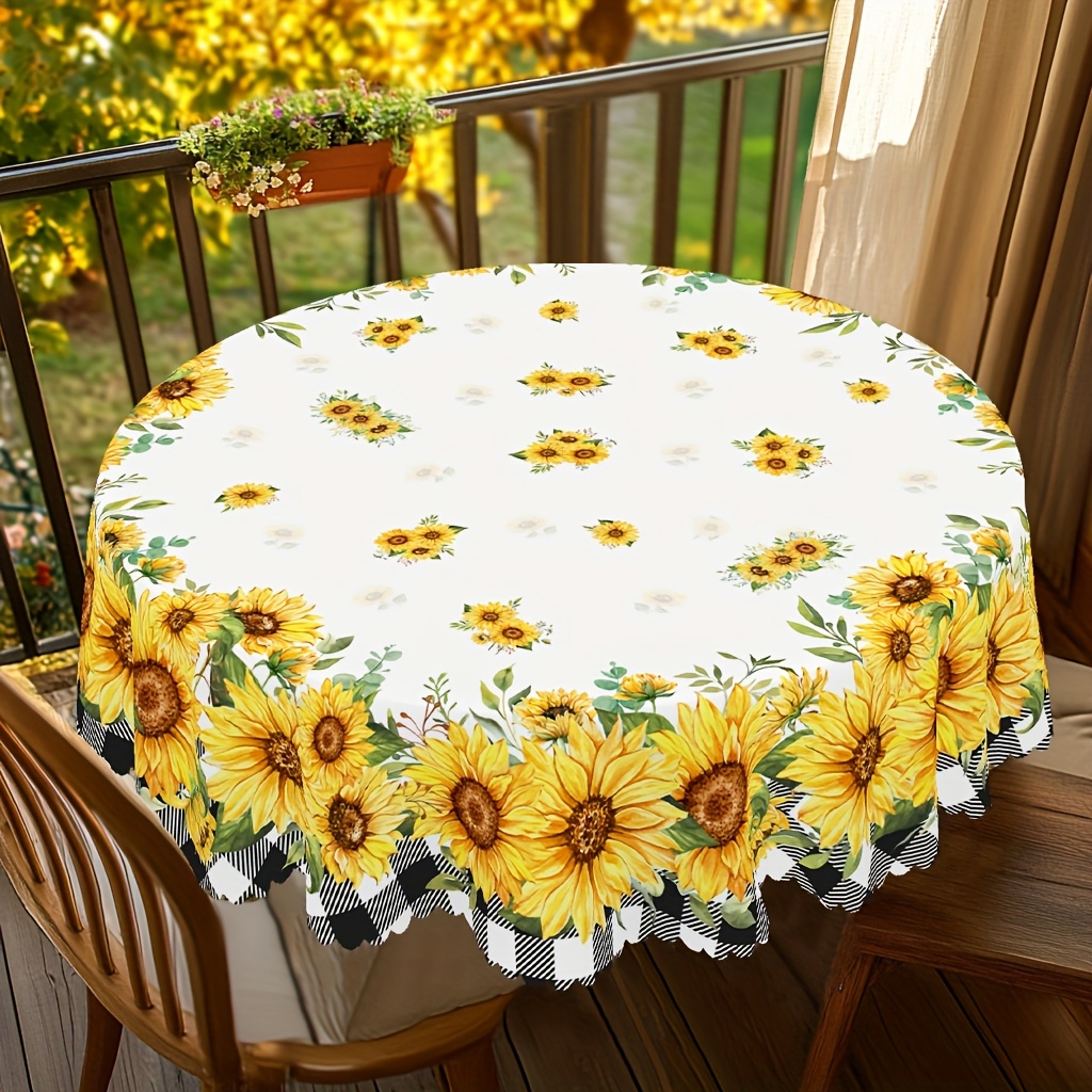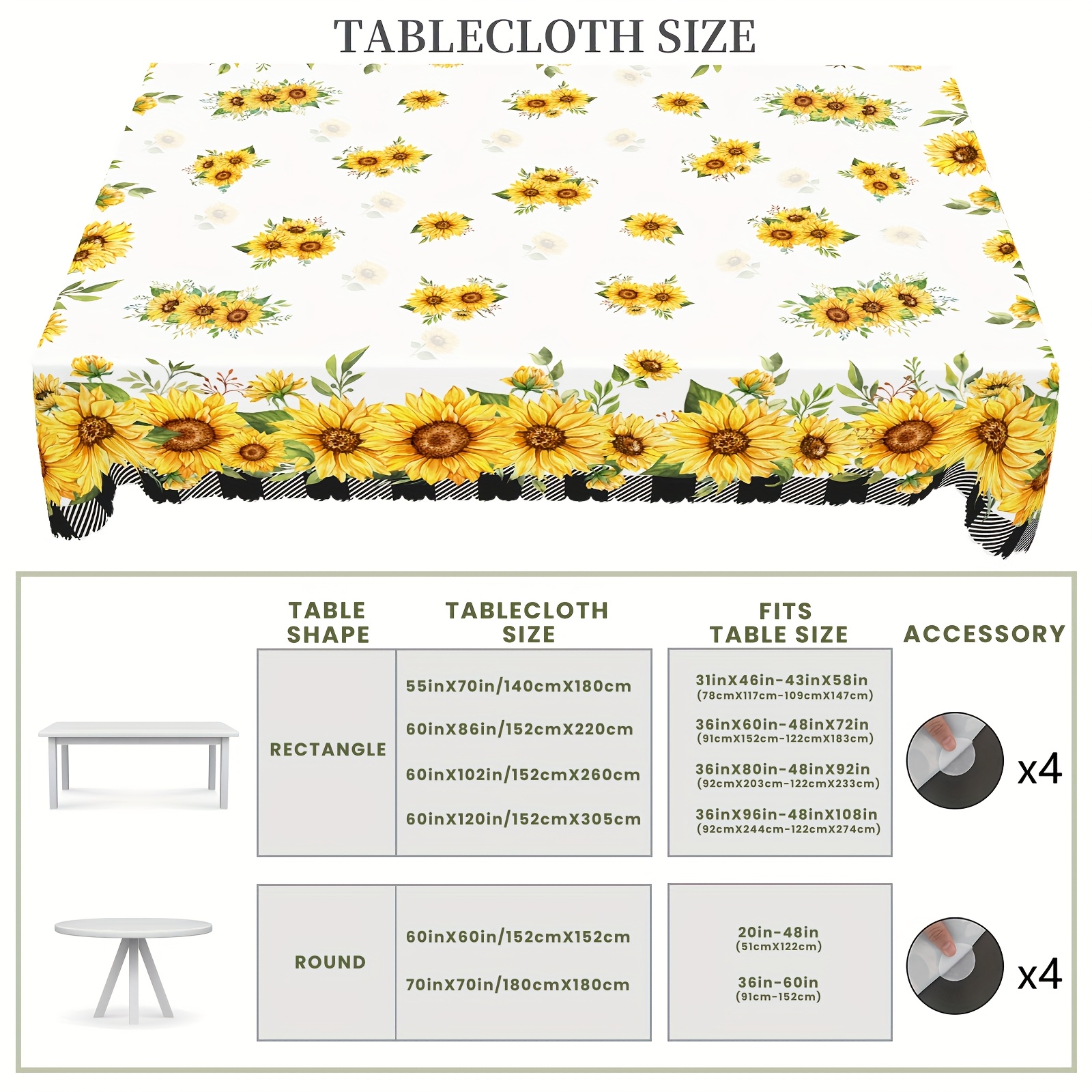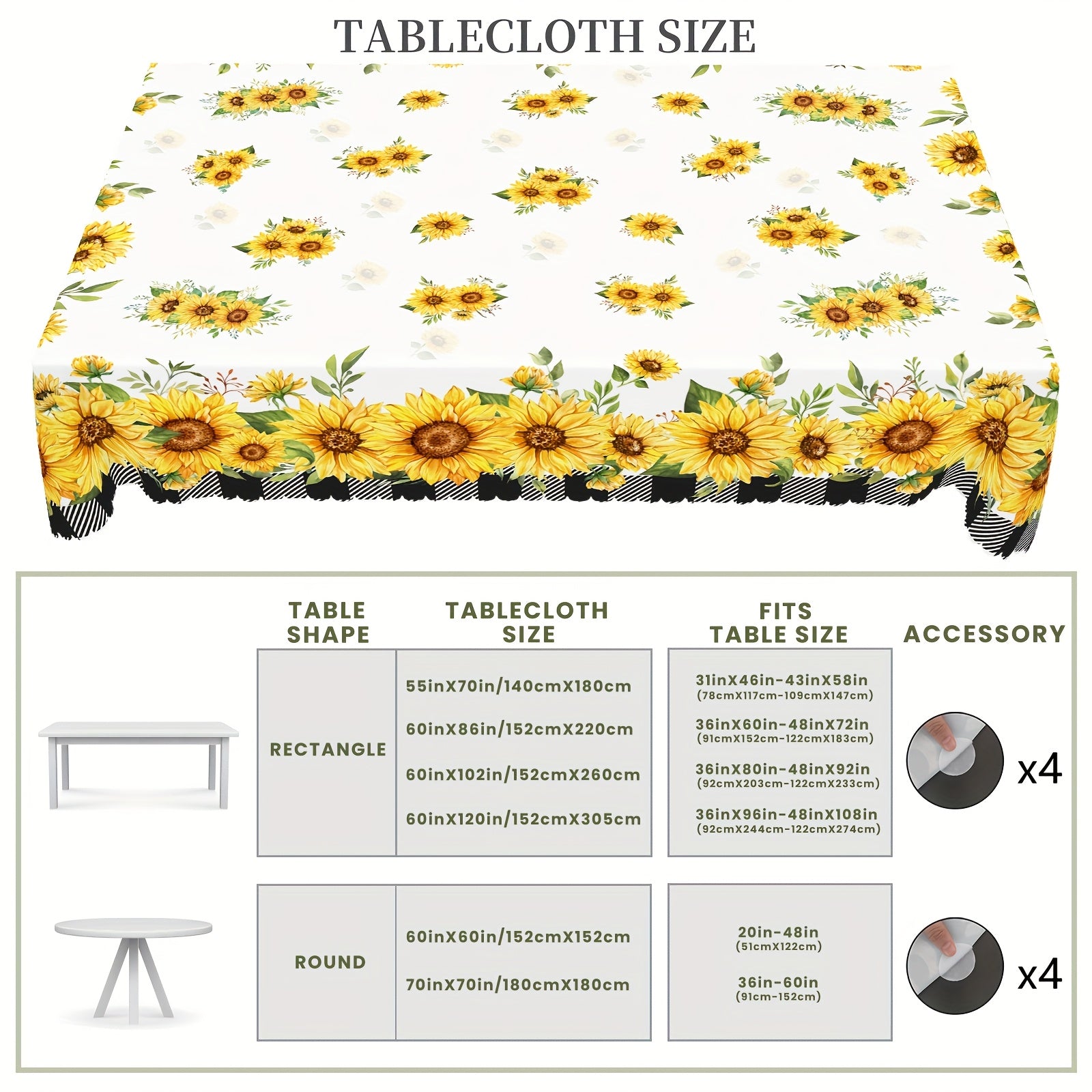 1pc Tablecloth+4pcs Anti Slip Stickers, Floral Themed Printed Tablecloth, Farmhouse Style, Blooming Sunflowers Design, Wedding Season, Anniversary, Mother's Day, Camping Picnics, Party Decor, Kitchen Accessories, Room&Outdoor
