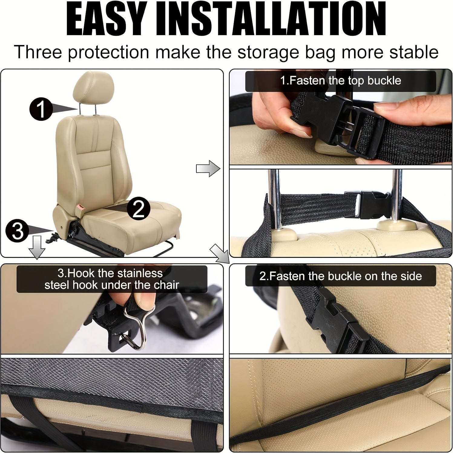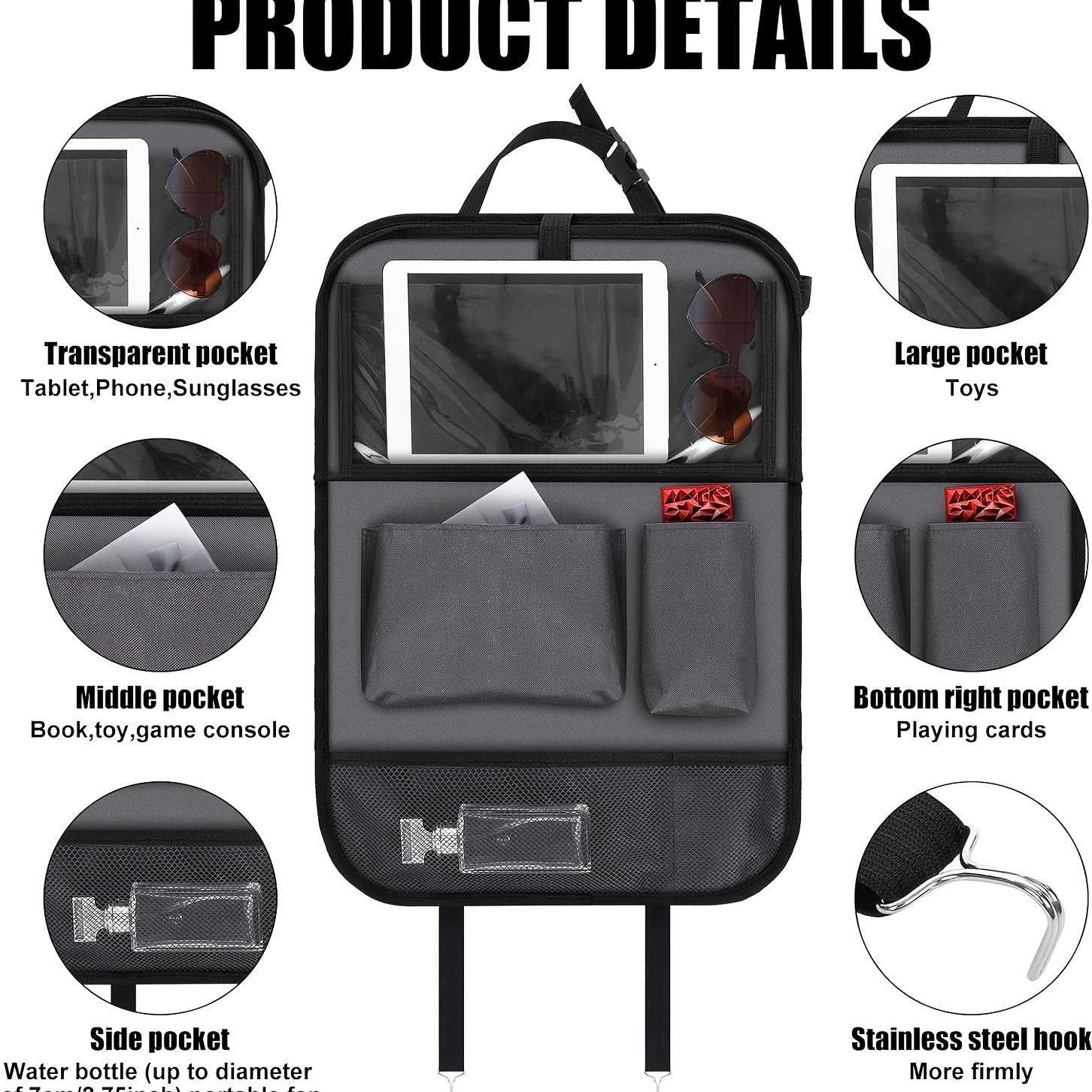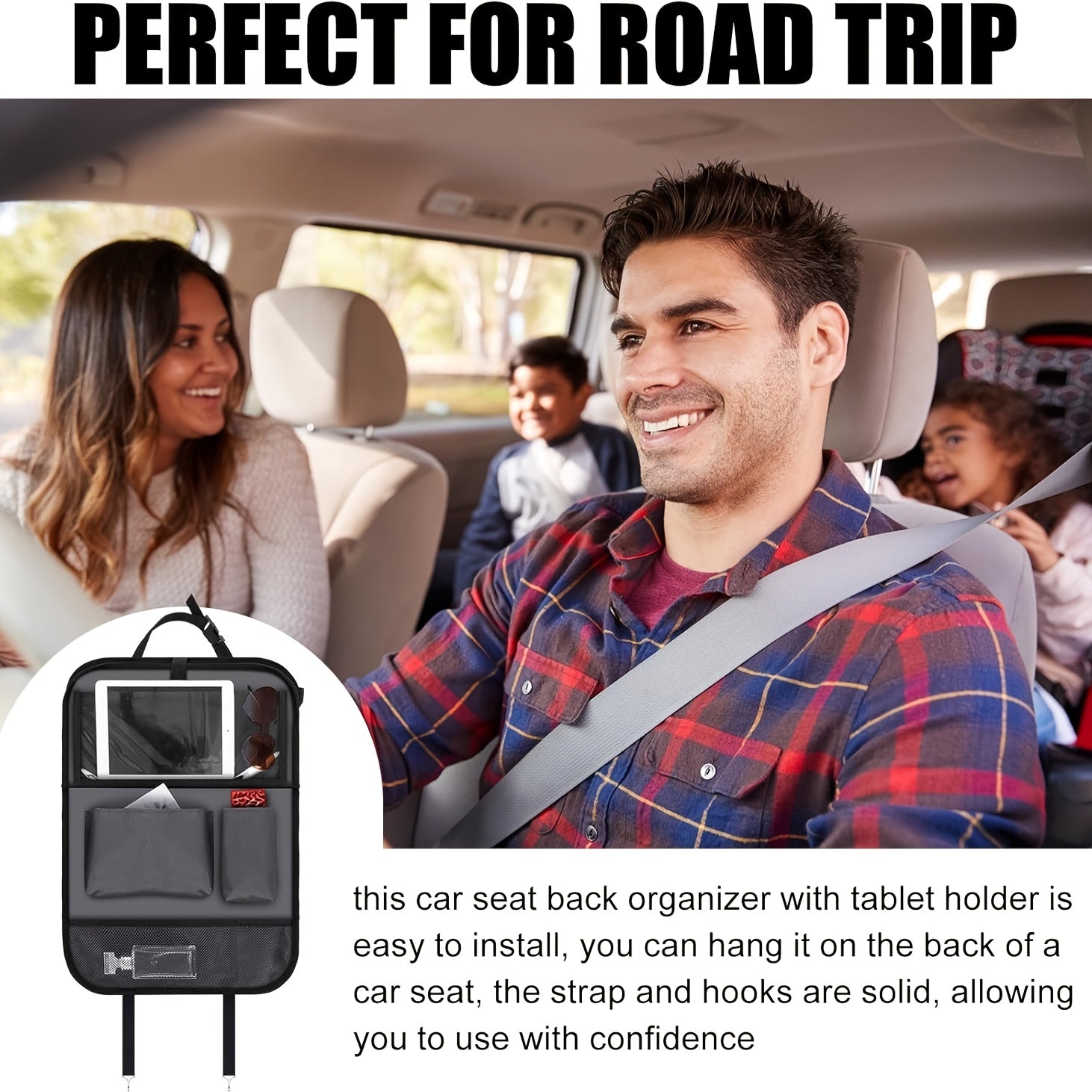 2-Count Backseat Car Organizer with Table Tray & Tablet Holder - 6 Storage Pockets, Kick Mats Protectors, Durable Faux Leather, Classic & Grey, Unisex Travel Accessories for Family Vehicles, Vehicle Organization, Sleek Design