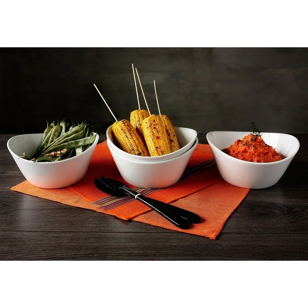 This Porcelain wavy serve bowl from is very versatile bowl for sides, salads, pasta and more. This bowl measures 8. 07" x 7. 76" x 3. 62" and has a capacity of 46 oz. It will nest beautifully in your cabinet if you purchase more than 1. This bowl is made of white porcelain so it is durable, dishwasher, microwave and oven safe up to 450 degrees Fahrenheit. Pair these with other white porcelain serve items from to fulfill all of your entertaining needs.