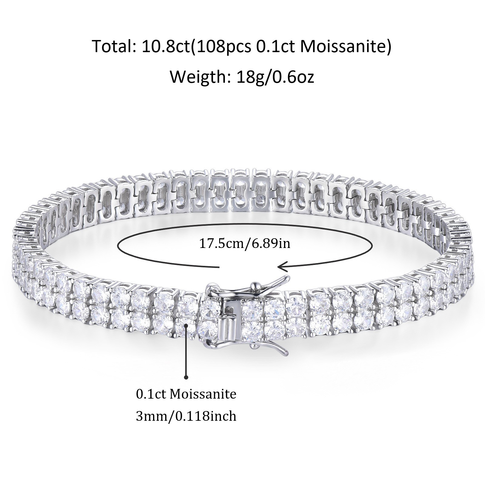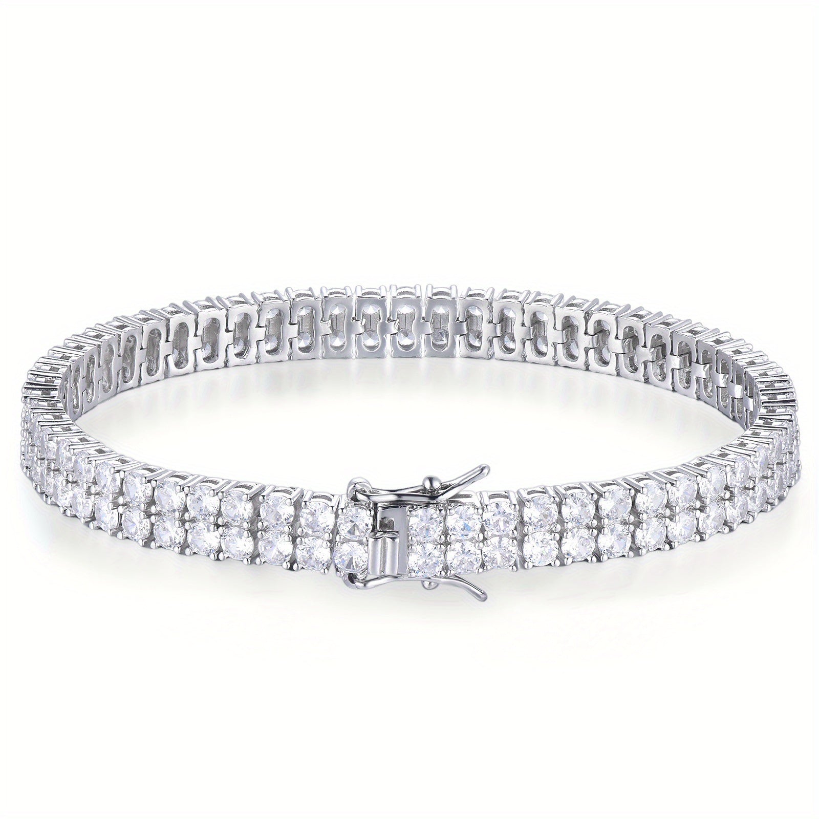 2 Rows Moissanite Tennis Bracelet For Women Men, 3mm D color VVS1 Round Cut, 925 Silver SparklingSolitaire Precious Birthday Valentine'S Day Wedding Christmas Brides Jewelry, Fine Jewelry Gifts For Women Men, Christmas Gifts