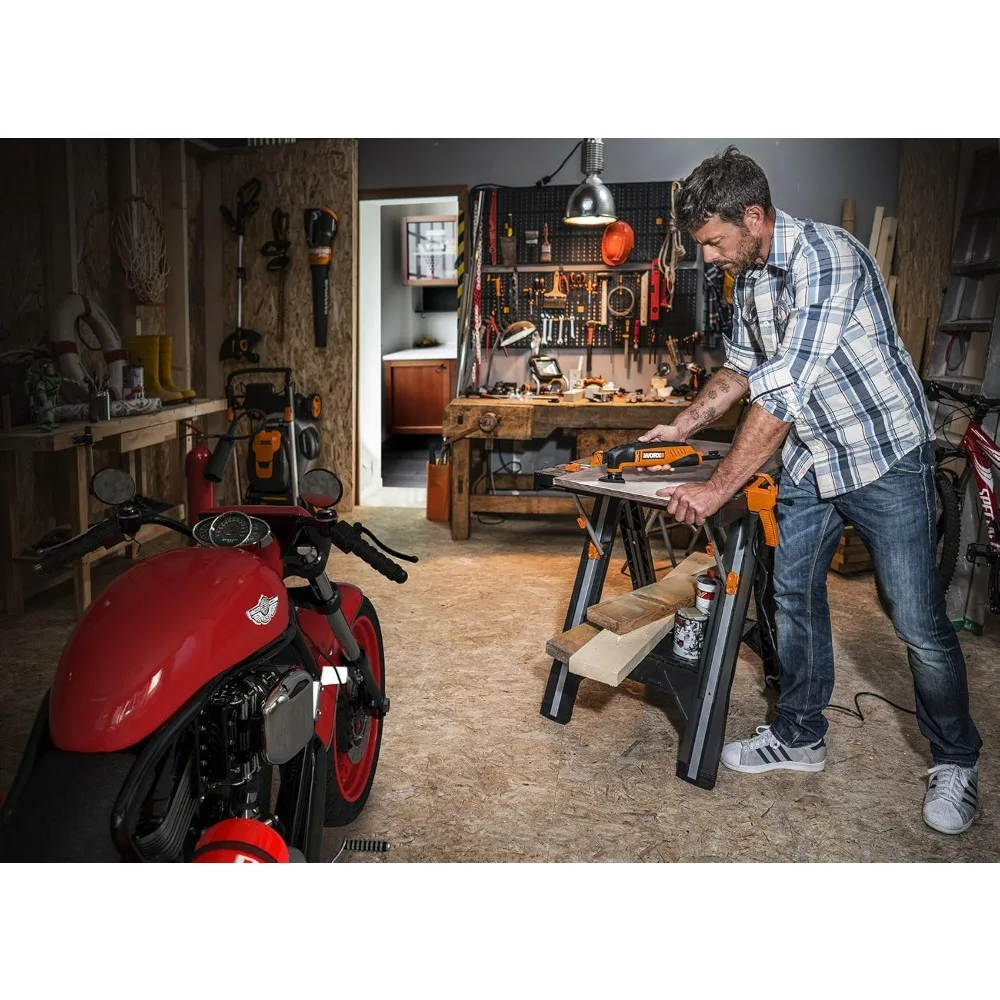 2025new-Folding Work Table and Sawhorse by Worx Pegasus, Portable Workbench with Easy Setup, 31 Wide x 25 Deep x 32 Tall Lightwe