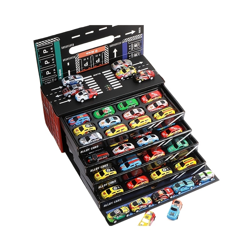 24pcs / 48pcs Pull-Back Racing Car Model Set | Various Iron Alloy Simulation Racing Include Map, Parking Lot, And Four-Story Garage | Gift Box Collector'S Edition with Rich Interactive Experience | Ideal for Christmas, Birthd