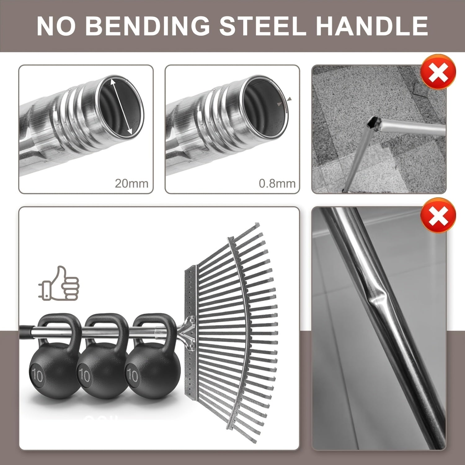 25 Tines Garden Leaf Rake | 18.5" Wide, 62" Adjustable Long Handle, Stainless Steel for Lawns, Yard, Grass, Flower Beds, All Season