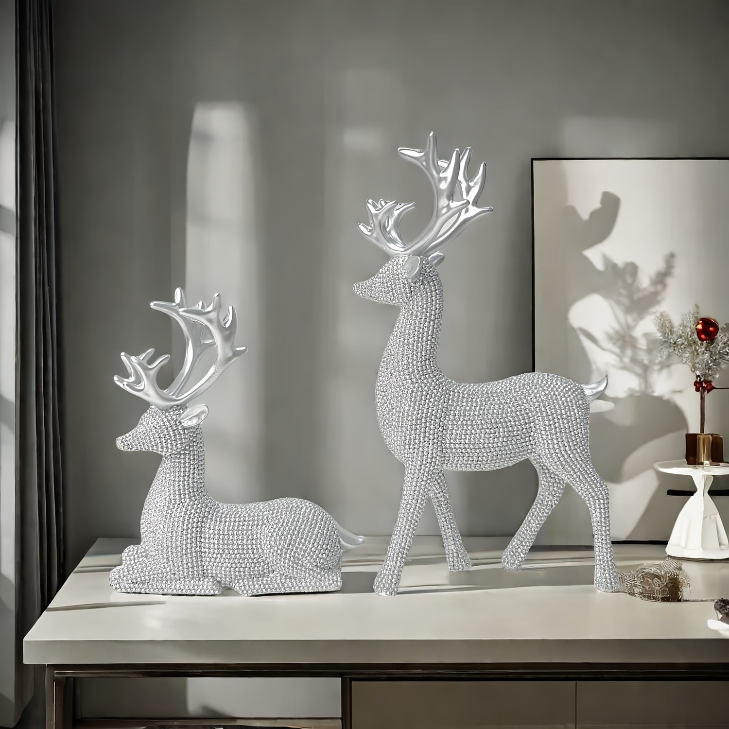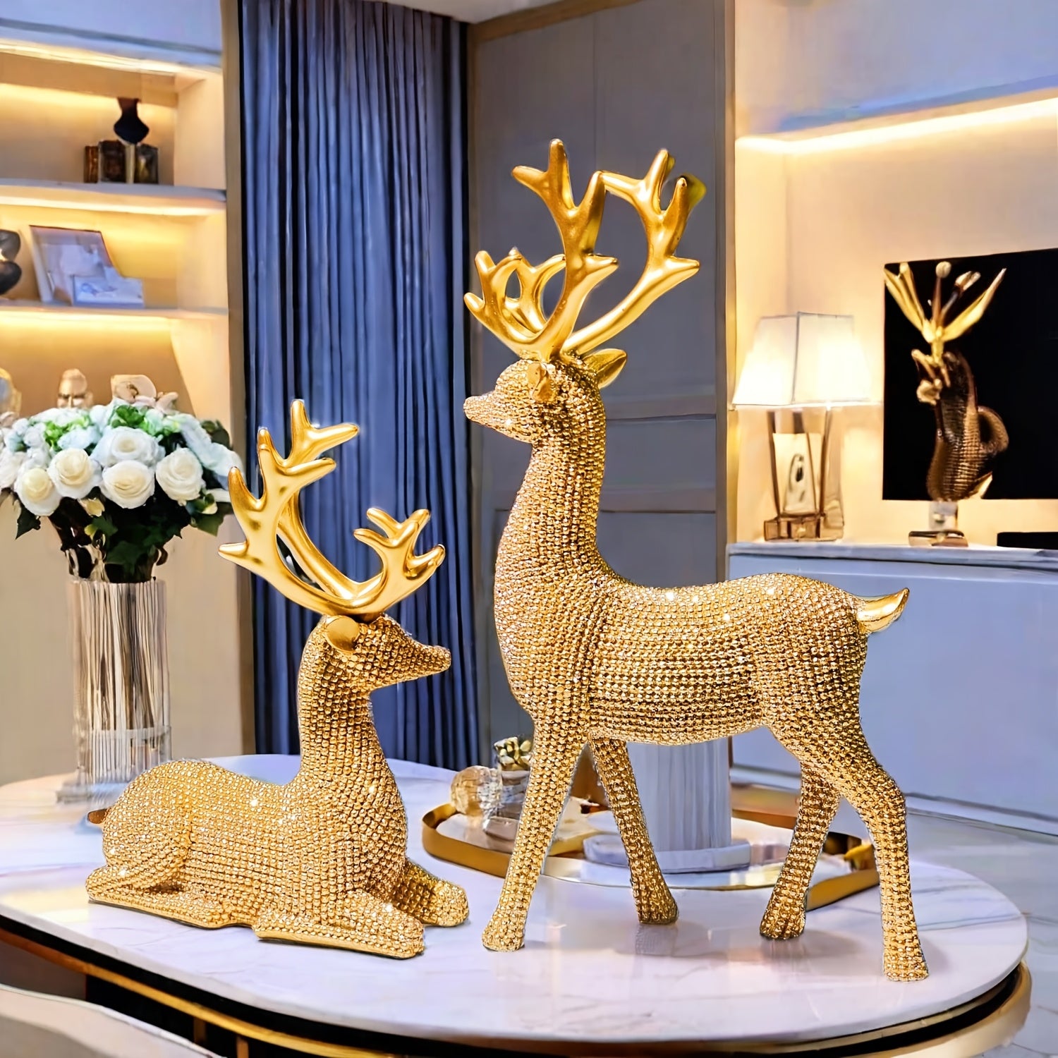 [2D Flat] Two Shiny Golden Bead Christmas Reindeer Decorations, Resin Festive Table Ornaments Suitable for Christmas, Valentine'S Day, New Year, Perfectly Suitable for Display Stands, Fireplace Tables And Gift Boxes. Christma