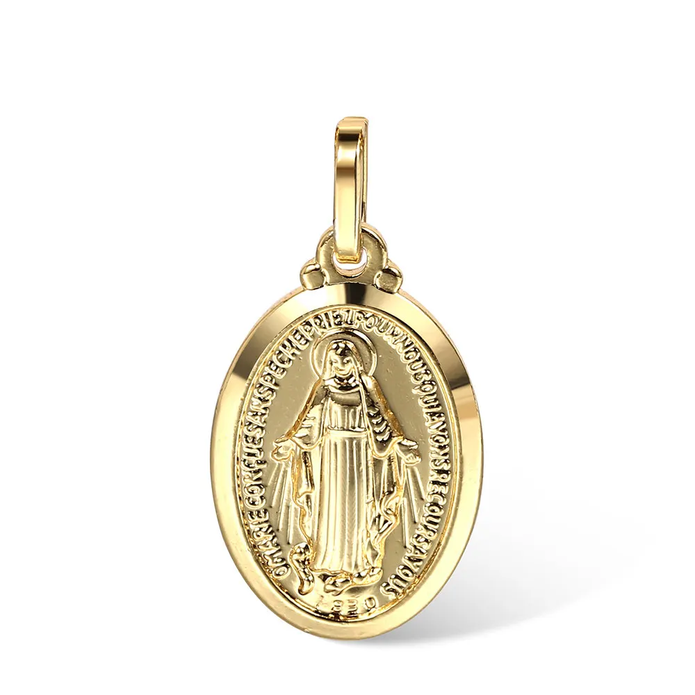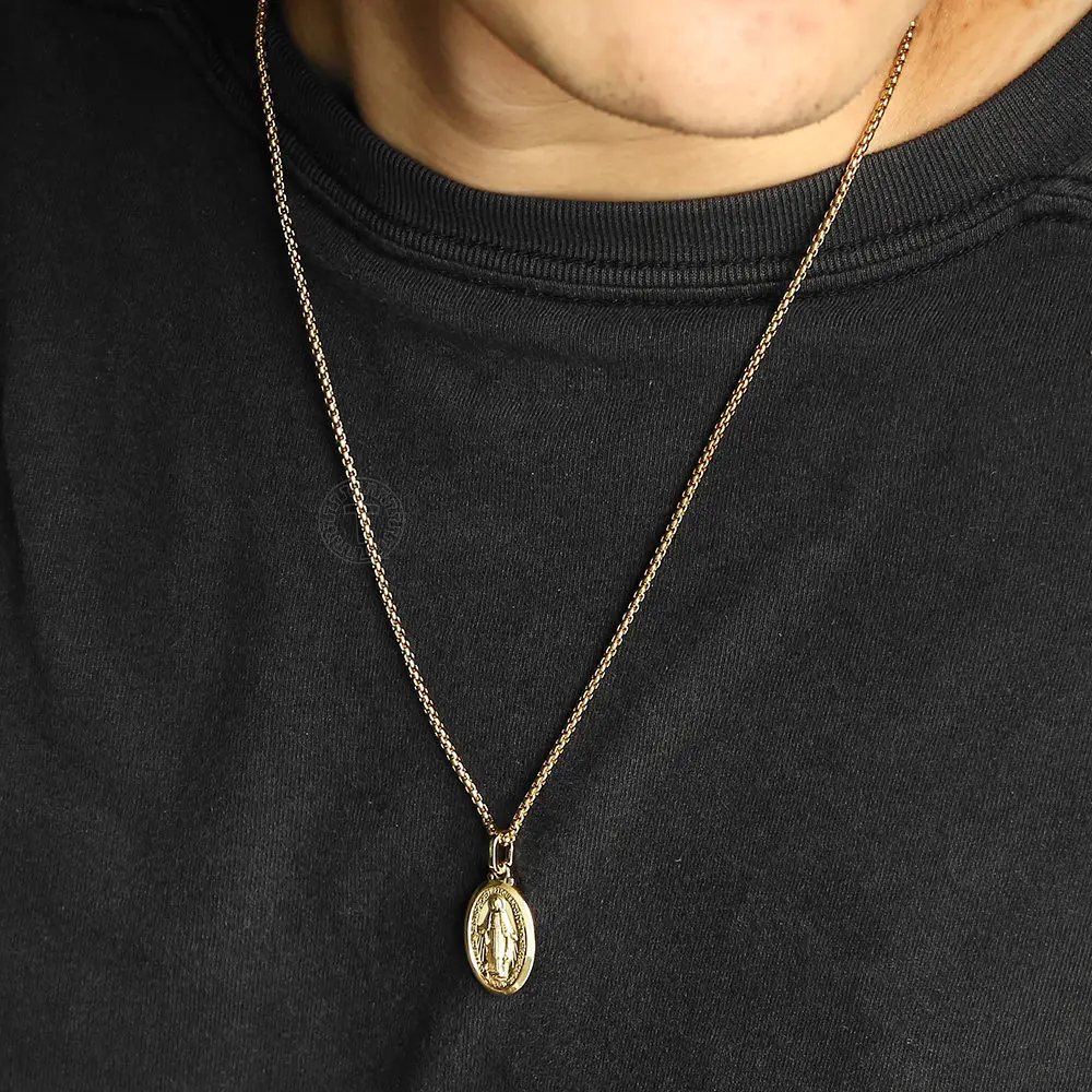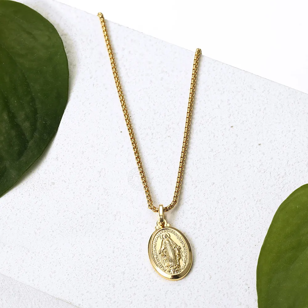 2mm Oval Virgin Mary Pendant Necklace for Men Women Jewelry Trendy Gold Color Box Link Chain Necklace Chain