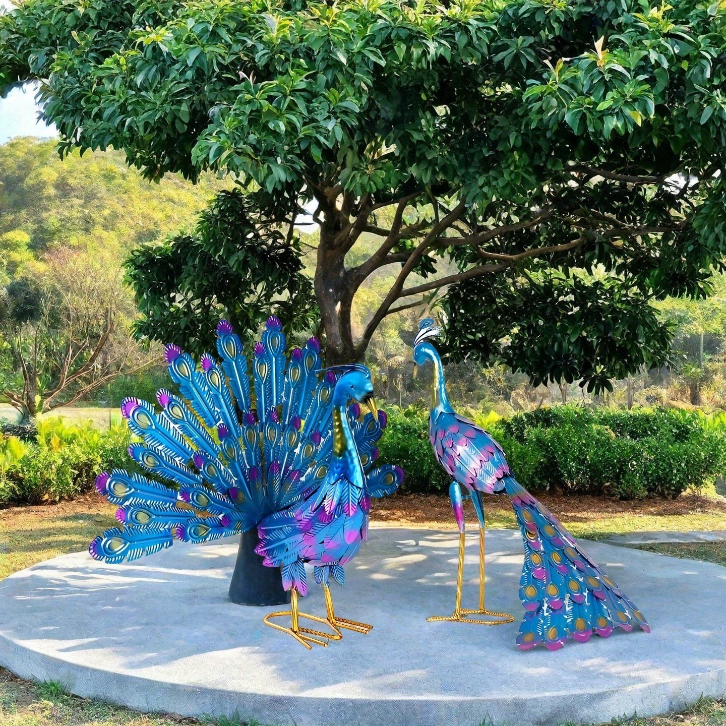 2pcs Of A Pair Of Male And Female Metal PeaRooster Outdoor Statues - PeaRooster Garden Decorative Courtyard Art, Suitable for Home, Garden, Terrace, Backyard, Porch Lawn Decoration, Wedding Anniversary Gift, Christmas Gifts