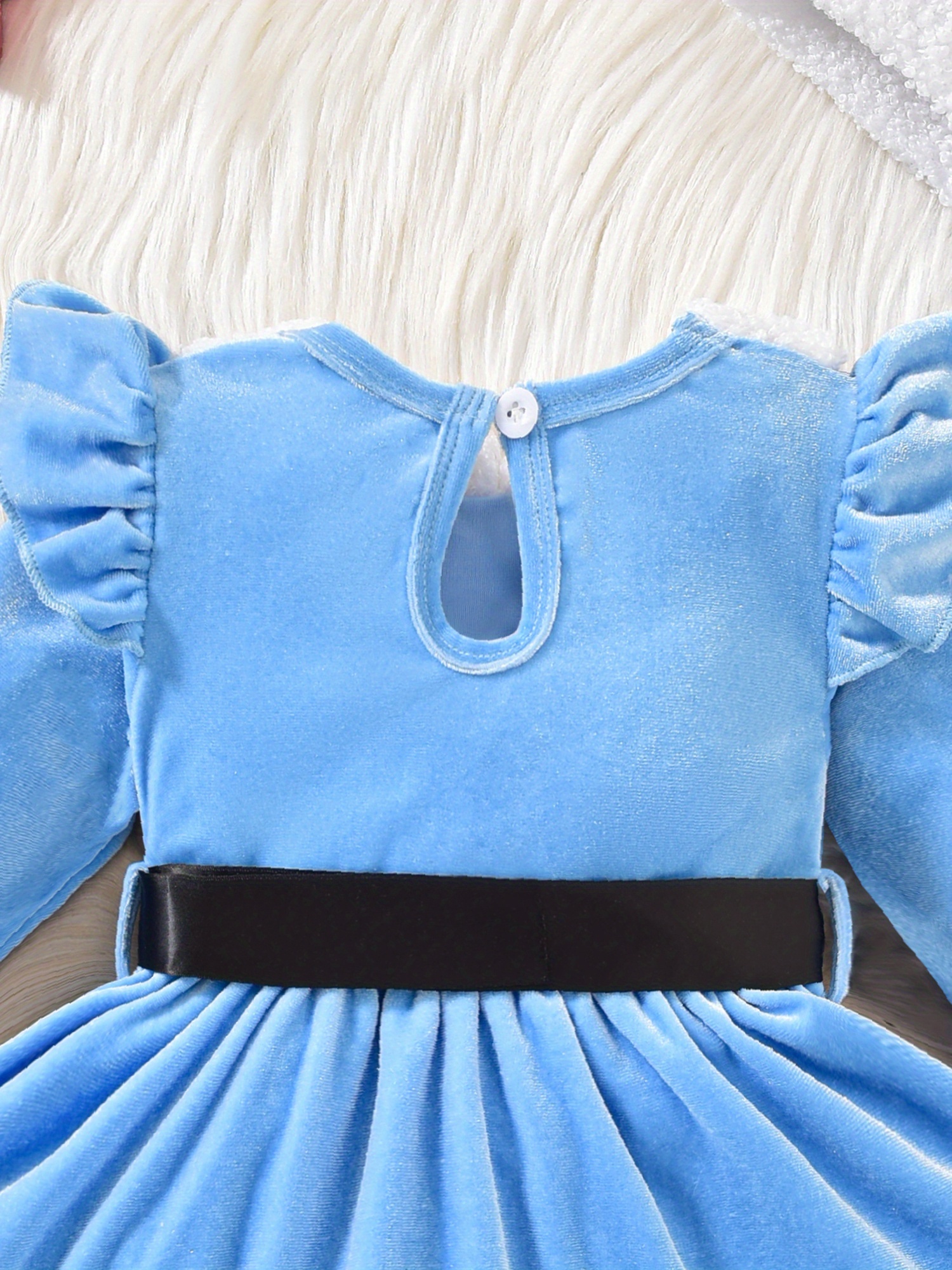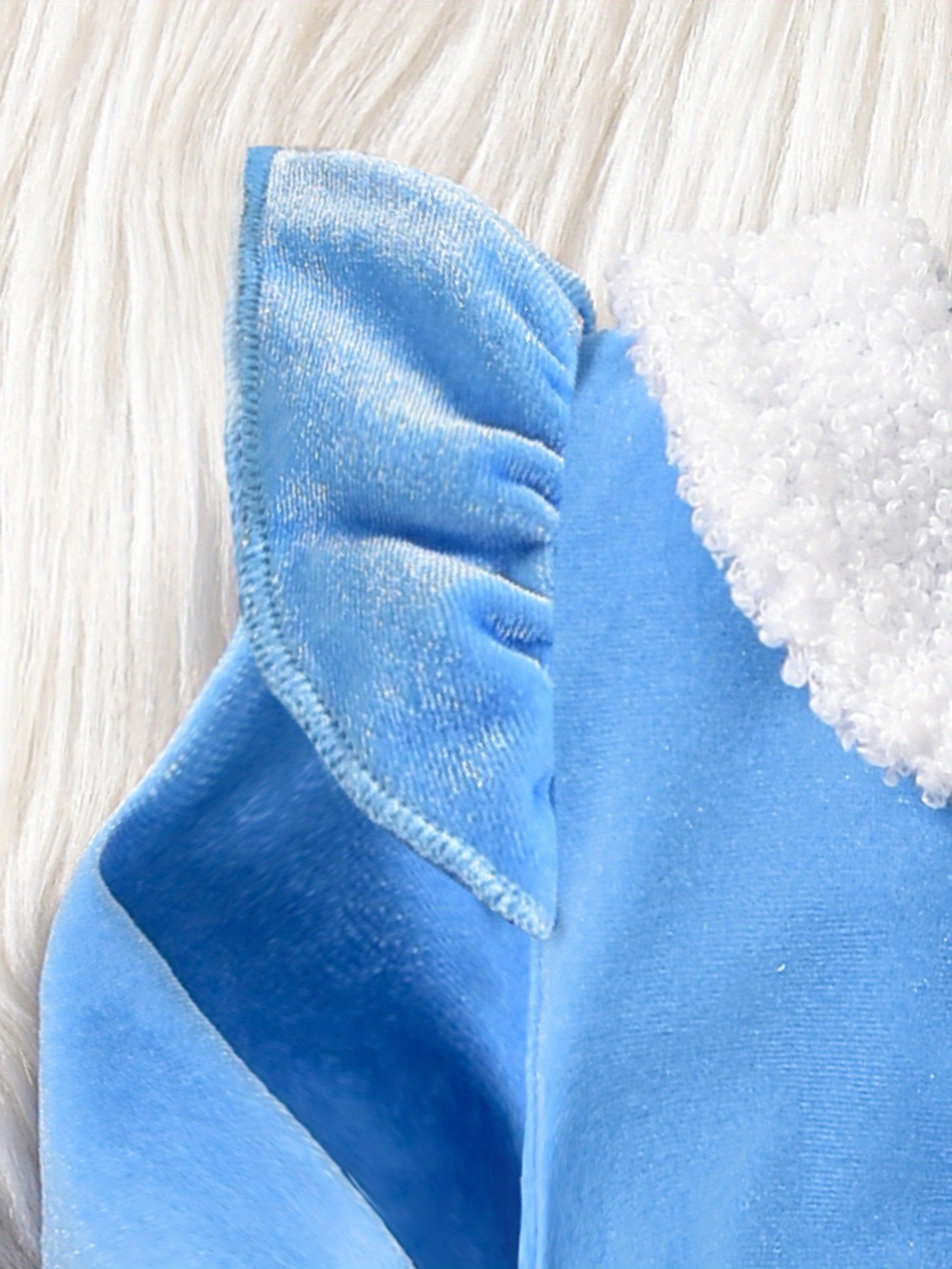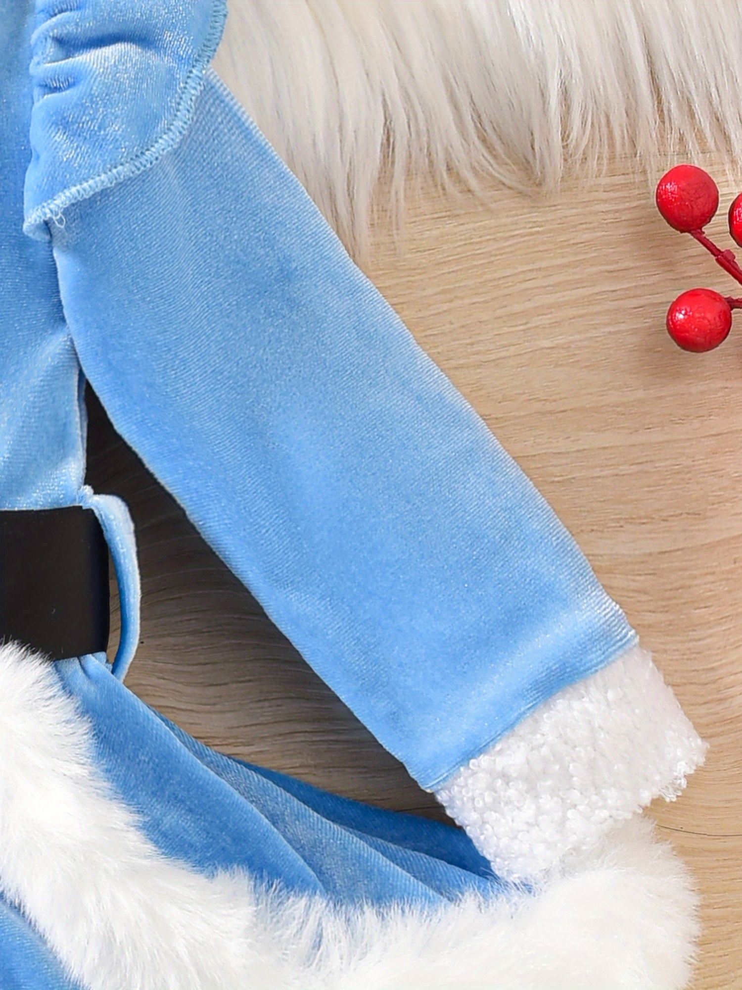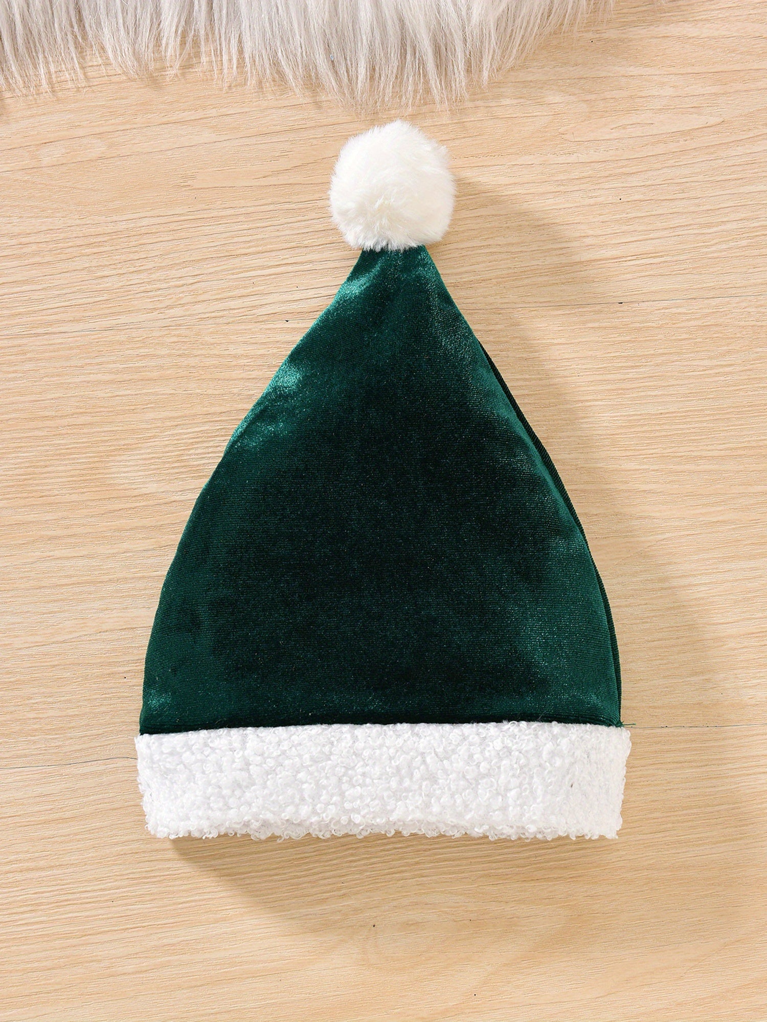 2pcs Set Baby Girls' Plush Patchwork Christmas Romper Dress & Hat Set - Soft Green & White Long Sleeve Jumpsuit with Ruffled Trim, Snap Closure, Cozy Winter Outfit for &, Machine Washable Holiday Outwear (Christmas Party Outf