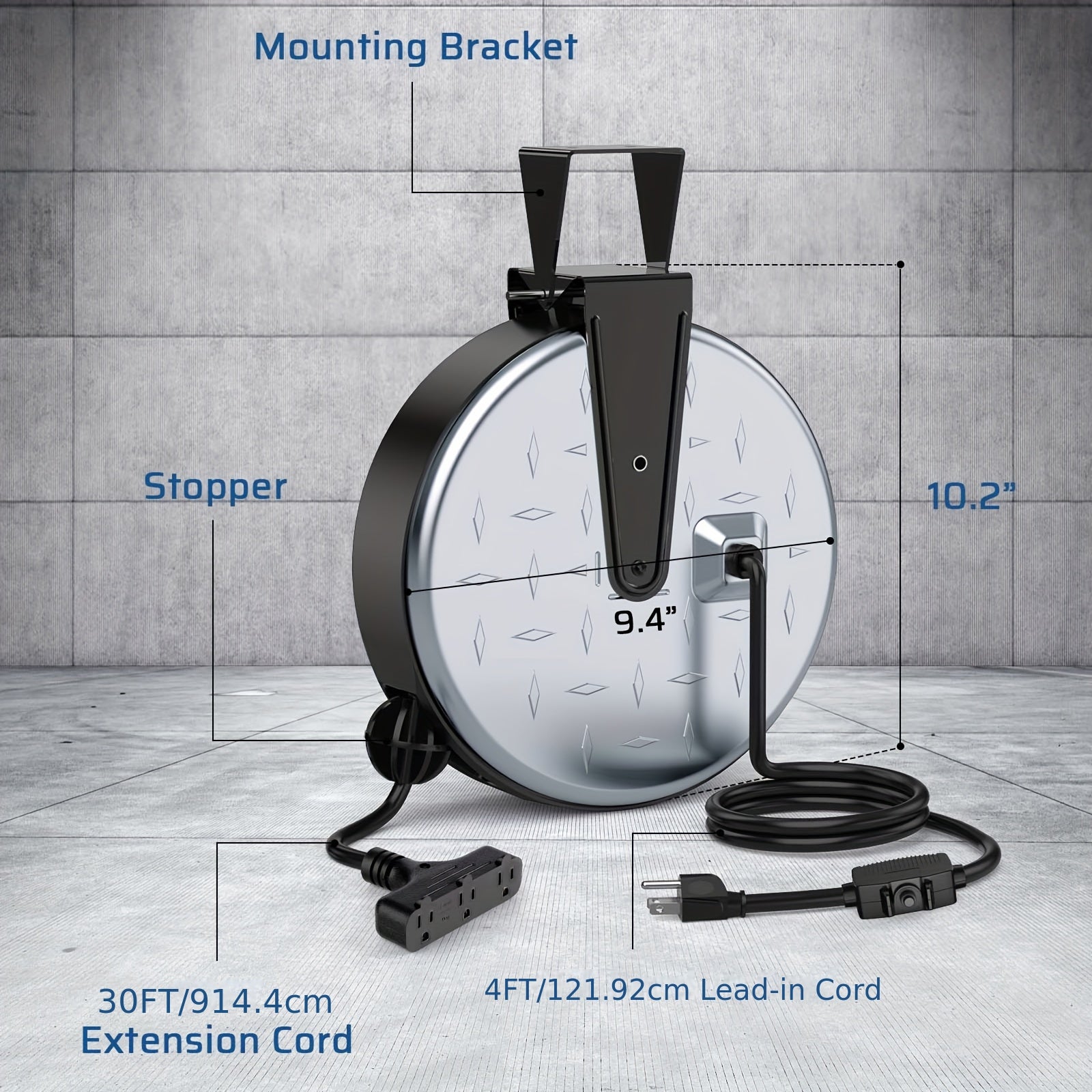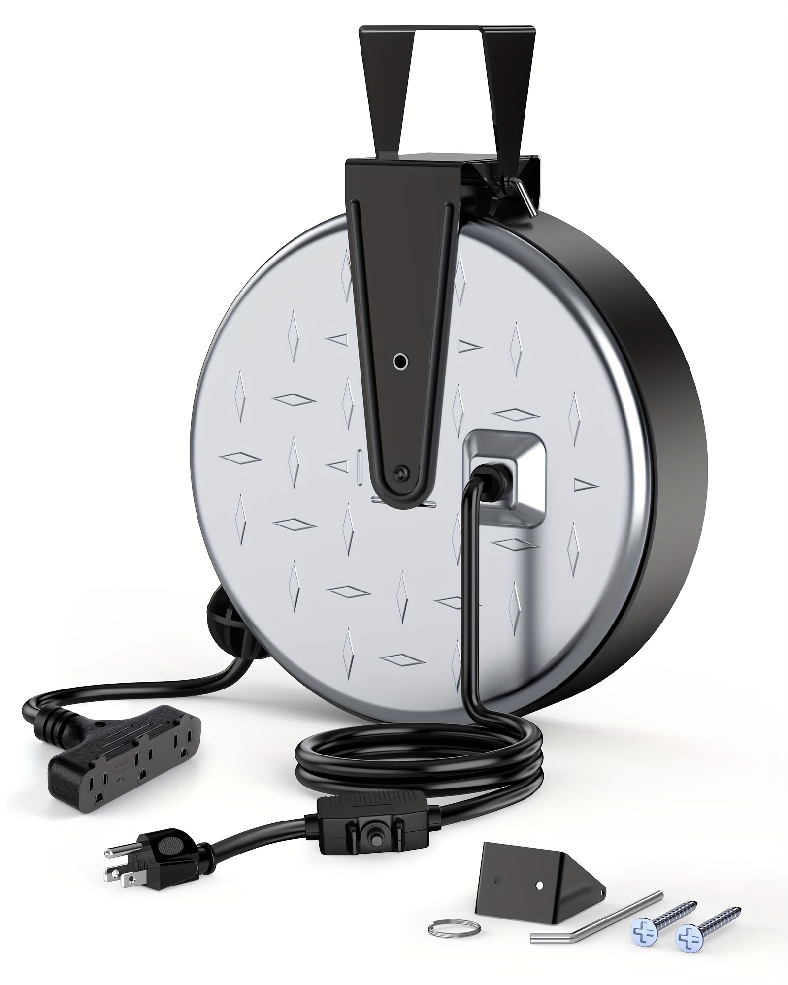 30ft Retractable Extension Cord, 16AWG/ 3C SJTW Power Cord, 3 Outlets, 10A/125V Hand Wind Retractable Extension Cord Reel, Power Cord Reel, Electric Fence Fence, Electric Fence Post, Extension Cord Retractable, Extension Cord