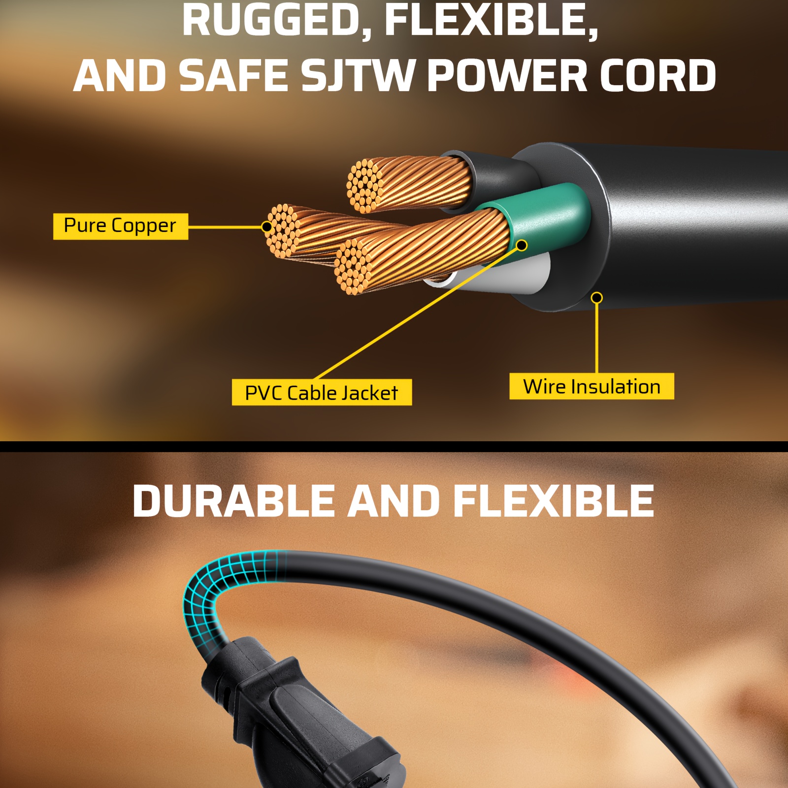 This 30-foot 16/3 SJTW power cord with a metal casing shield from DEWENWILS is designed to withstand external impacts, making it ideal for home use.