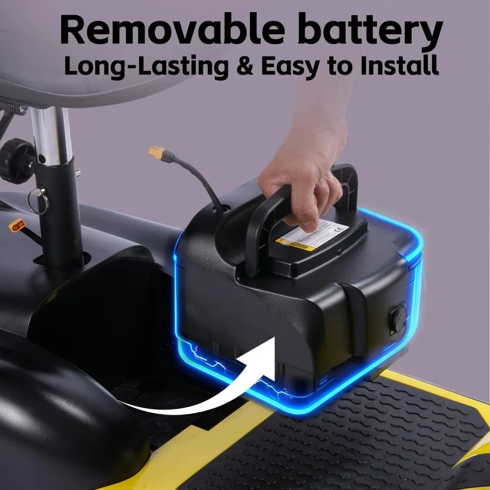 - Extended Battery Life:Our mobility scooter features a removable battery and supports an optional second battery to significantly extend your travel range. The battery can be charged directly on the scooter or detached for convenient independent chargingSay goodbye to frequent recharging—this design delivers a smoother and more hassle-free travel experience. Whether you're heading to the store or enjoying a night out, never worry about running out of power again.