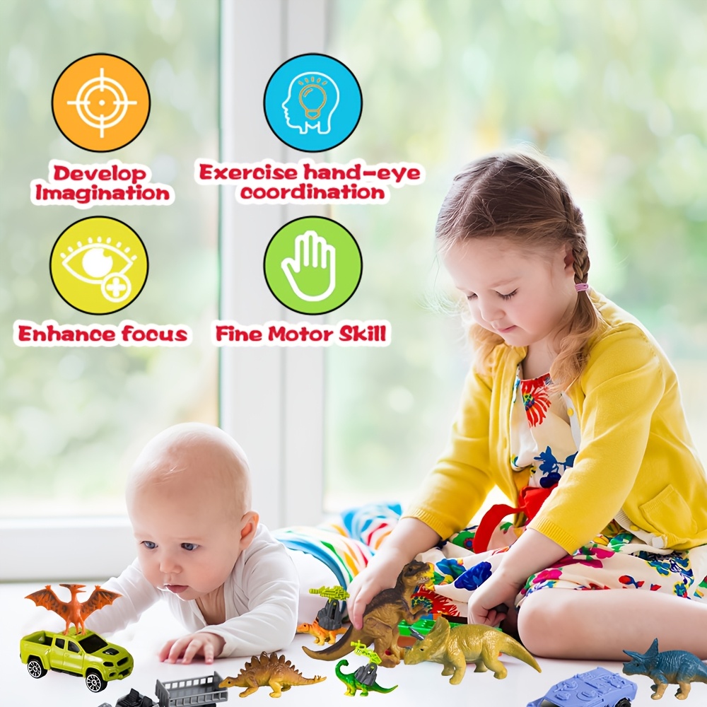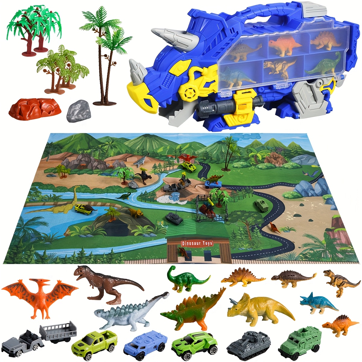 40pcs Dinosaur Transport Engineering Truck Toy Set, With Map & Trees & Vehicle & Simulated Dinosaur, Educational Toy For Youngsters, Creat A Dinosaur World, Ideal Birthday Gifts For Boys And Girls