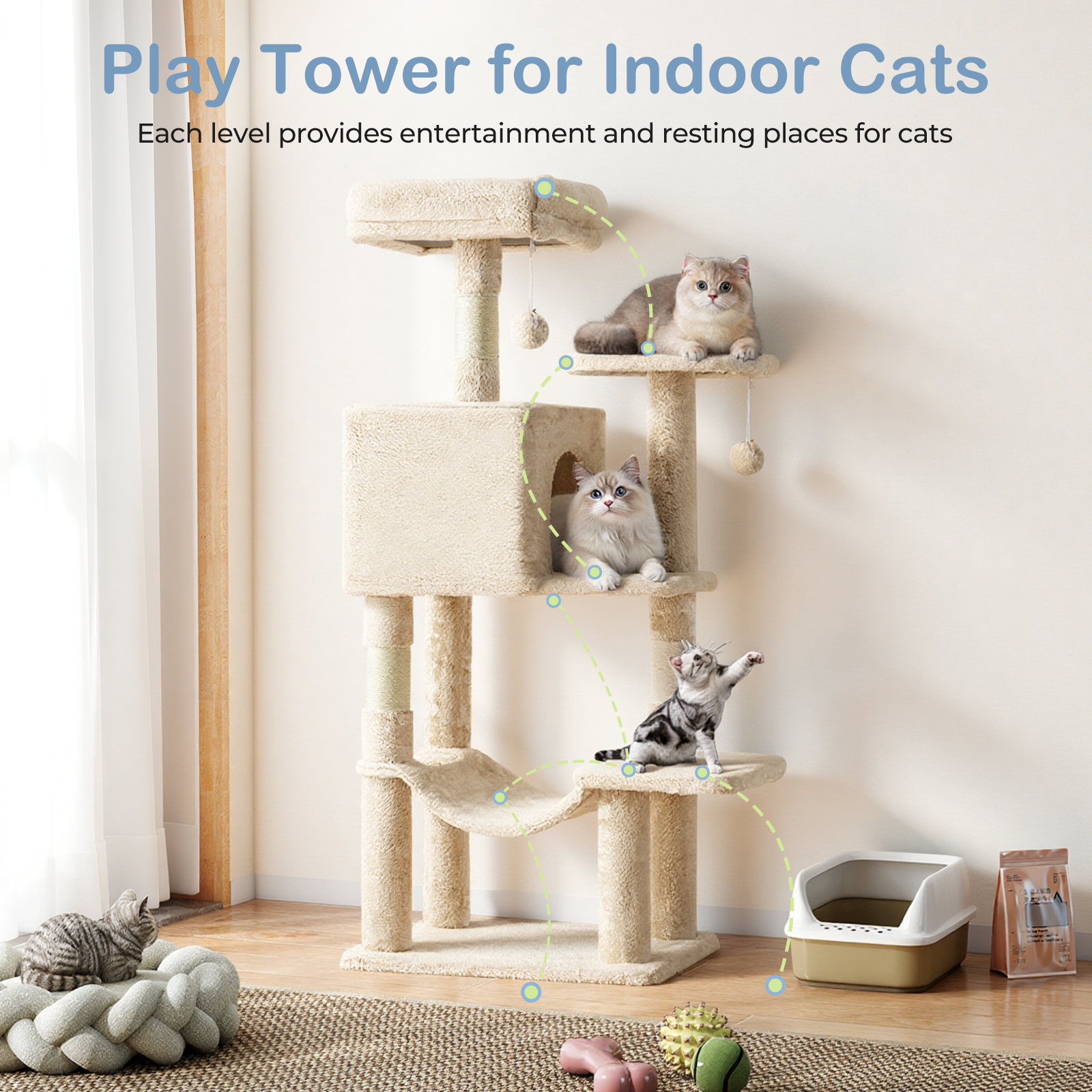 44/54 Inch Indoor Cat Tree, Cat Tower - Multi-Level Cat Condo Cat Furniture with Scratching Post, Hammock, Cave, Anti-Tilt Stable House Condo Pet Playhouse, Easy to Assemble, Perfect Gift for Indoor Kittens And Cats, Pet Home