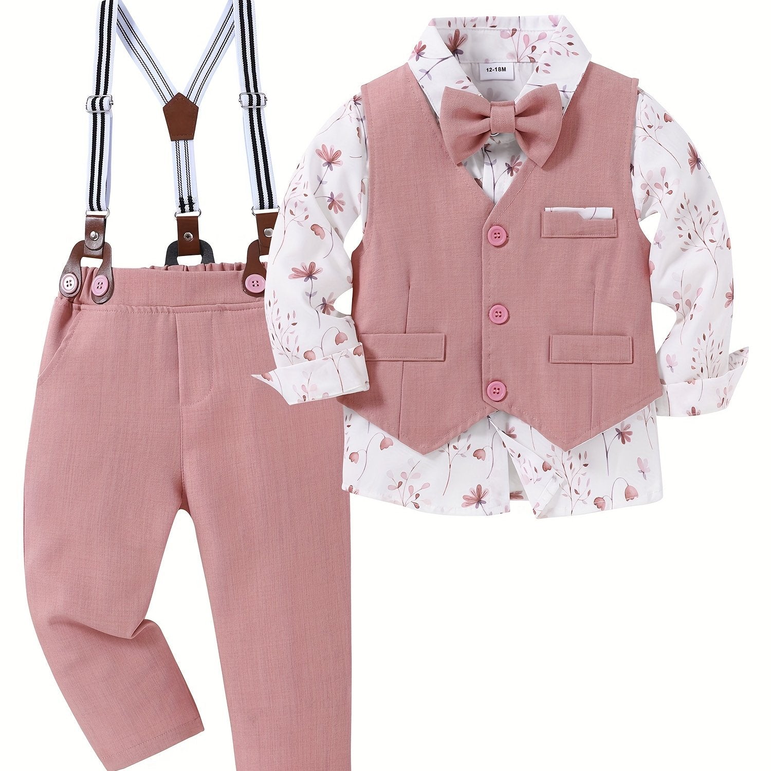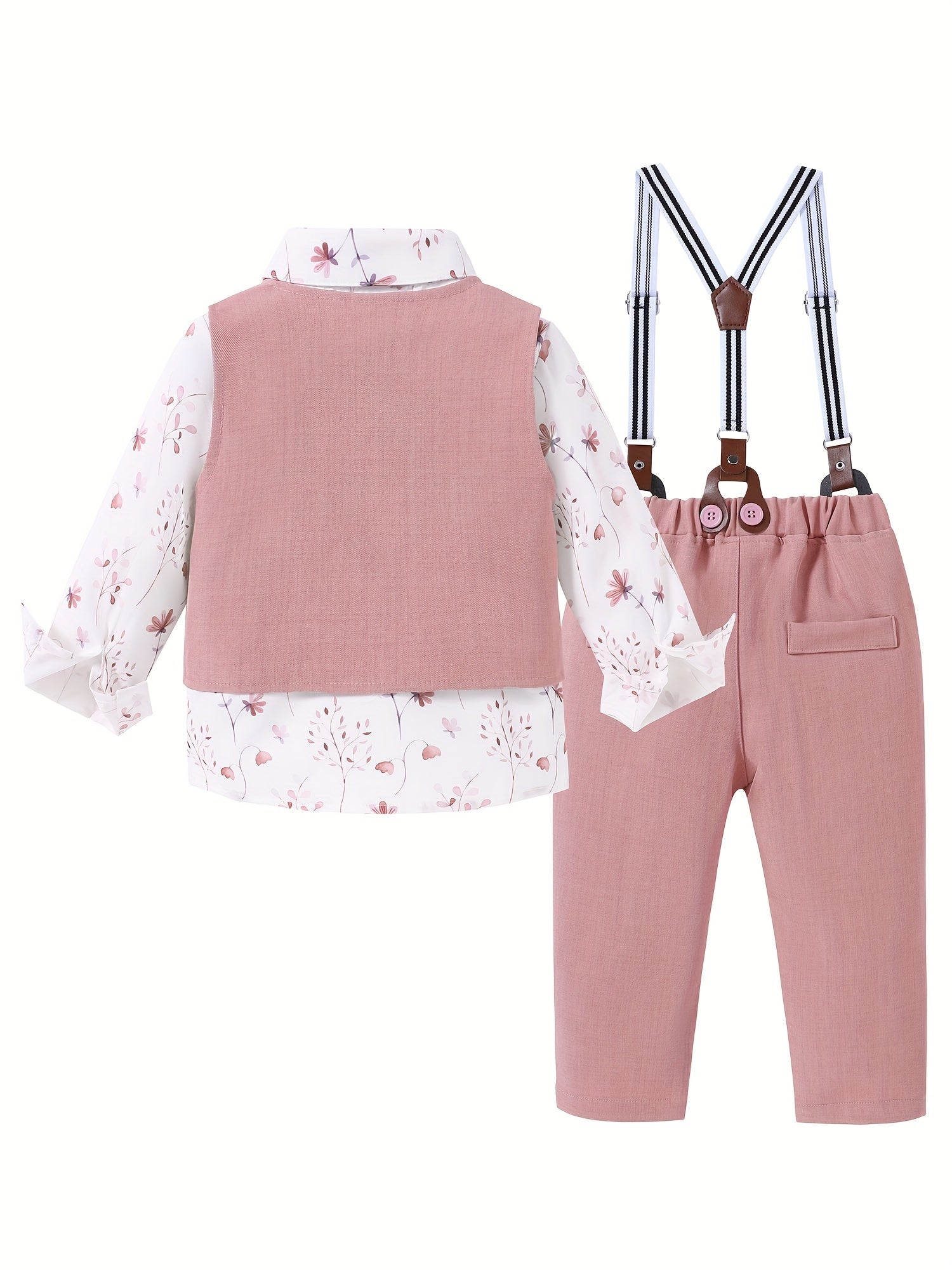 4pcs Boy Clothes Suit Gentleman Wedding Outfits Formal Dress Shirt/Bowtie/Vest/Suspender Pants 1-5T, Special Occasion Outfit, Toddler Wedding Attire, Elegant Toddler Outfit, Classic Baby Suit, Comfortable Toddler Clothes, Dur
