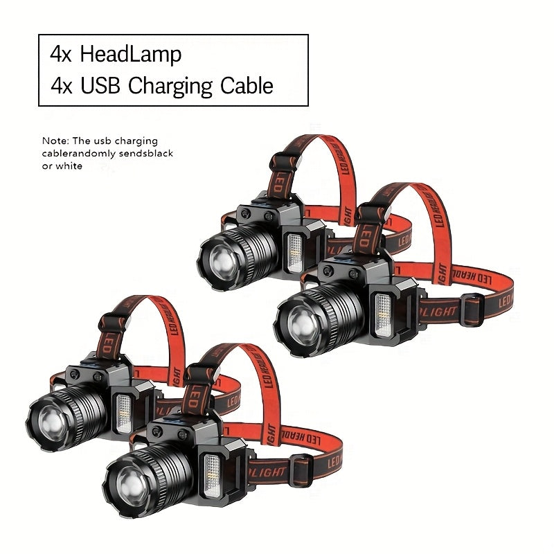 4pcs Model Of Retractable Zoom Headlamp, Equipped with A COB Side Light And 8 Lighting Modes, IPX4 Waterproof, Suitable for Home Decoration, Work, Maintenance, Camping, Running, And Hiking, Camping Flashlight, Hiking Light, Z