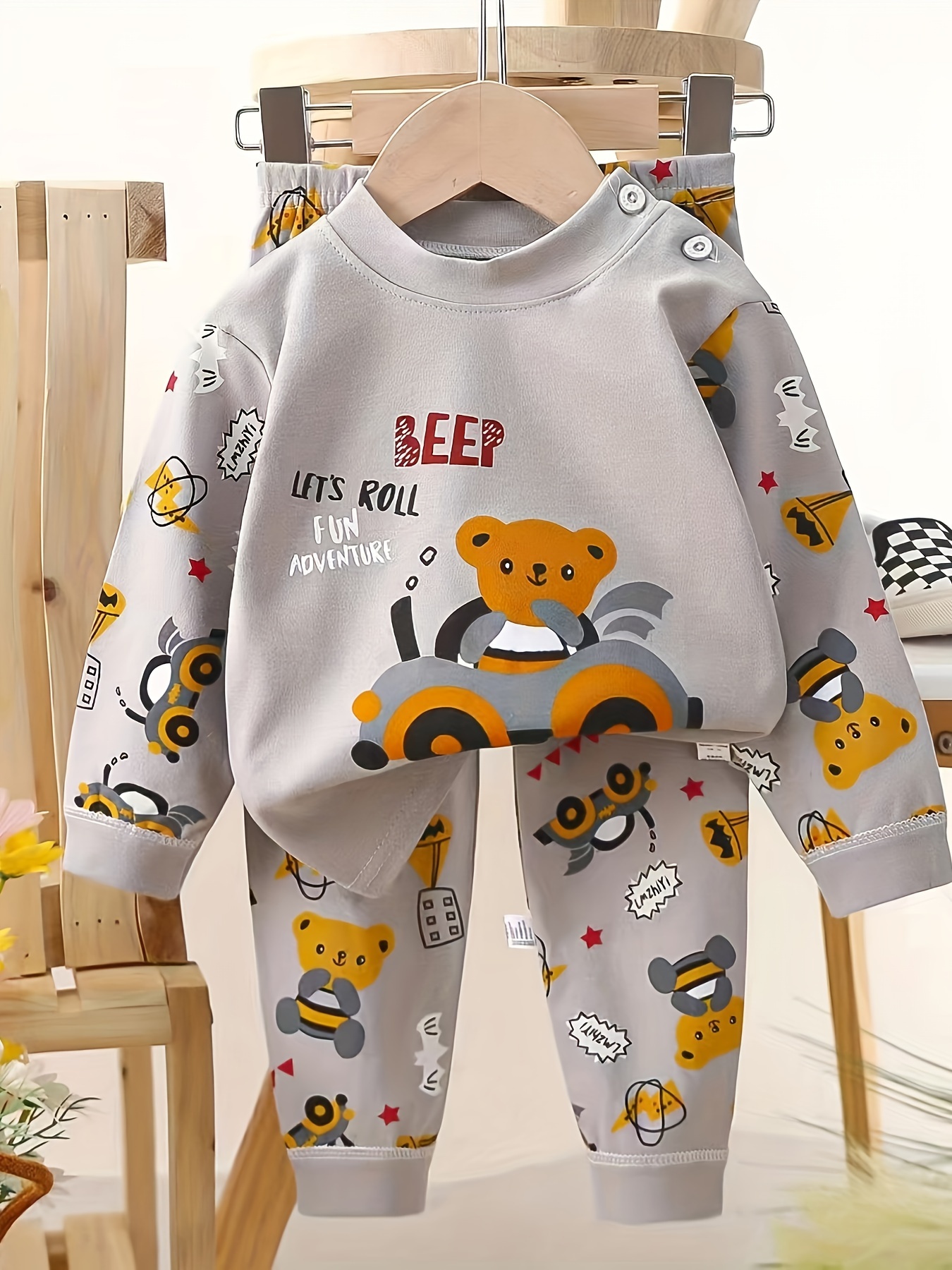 4pcs set set set Autumn simple fashion full print set Car series full print Cute children love motorcycle print series autumn set comfortable and breathable, Perfect for Outdoor