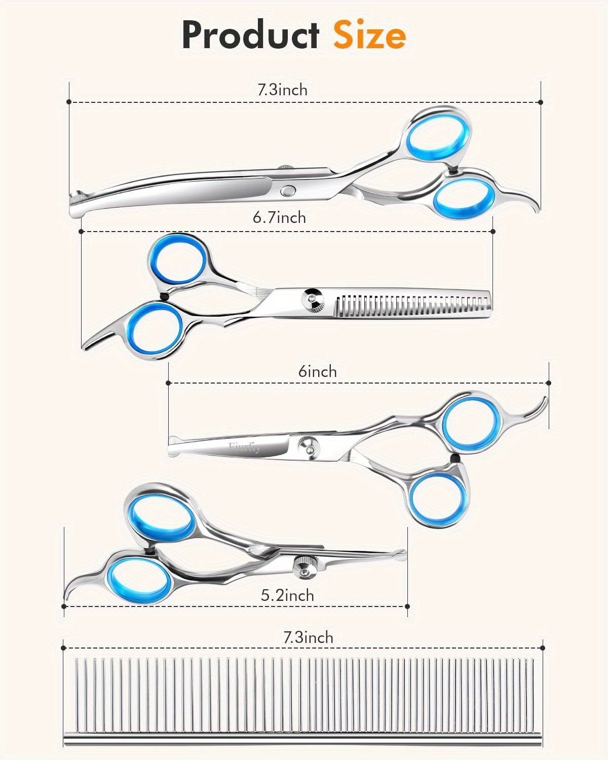 6-in-1 Dog Scissors- Professional Stainless Hair Kit with Safety Rounded Tips, Soft- Handles for Small& Large Dogs, Cats