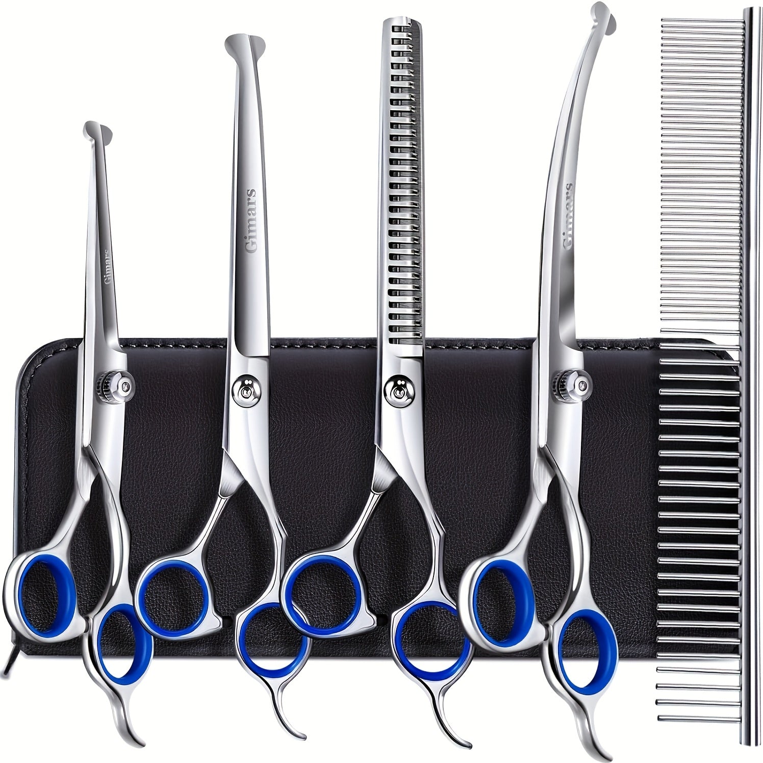 6-in-1 Titanium Coated Professional 4CR Stainless Steel Dog Grooming Scissors with Safety Round Tip, Heavy Duty Pet Grooming Scissors for Dogs, Cats & Other Animals, Iron Alloy, Universal Hand Orientation
