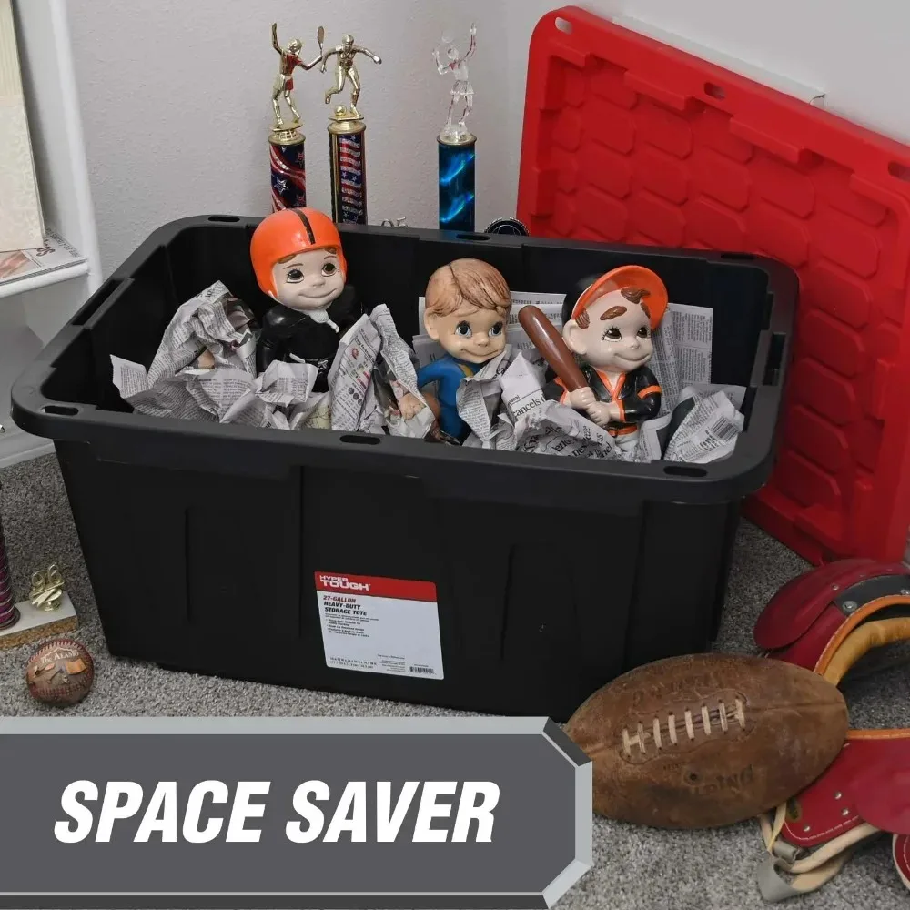 (6 pack/ 4pack) Hyper Tough Large Storage Bin, 27 Gallon Plastic Storage Container with Snap-On Lid, Black and Red