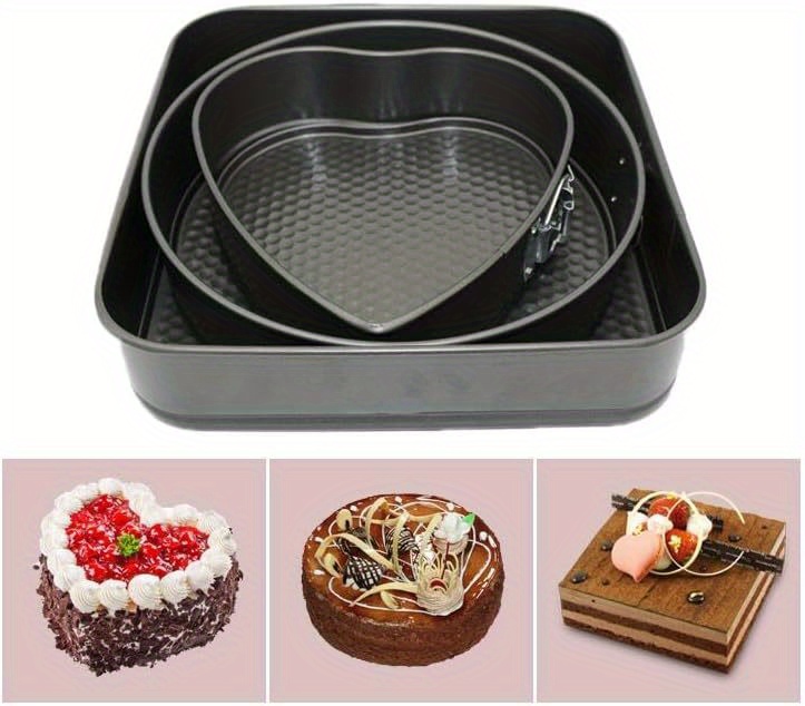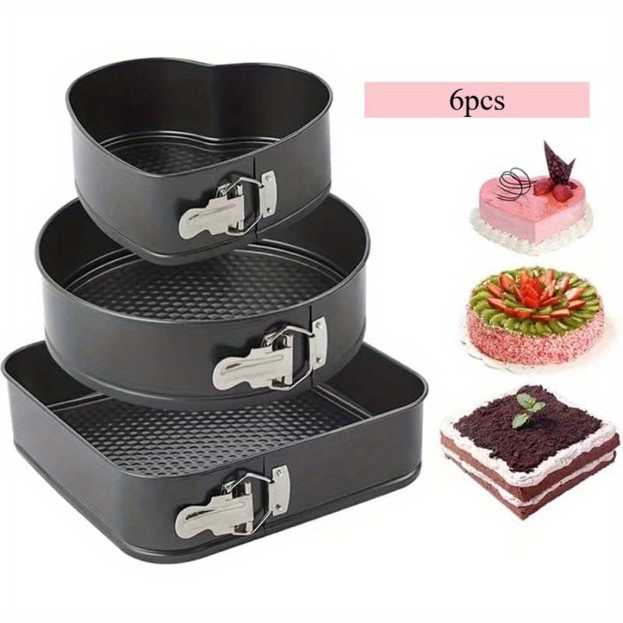 6pcs Cake Pan Set | 3 Shapes (Square/Round/Heart) X2, Carbon Steel Baking Mold With Removable Bottom, Non-stick Pan, Heavy Duty Cake Pan For Chiffon/Mousse/Cheesecakes, Wedding/Birthday Kitchen Tools