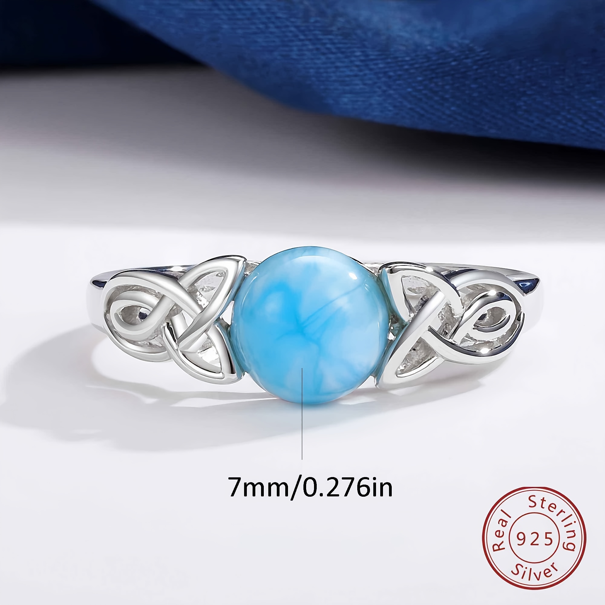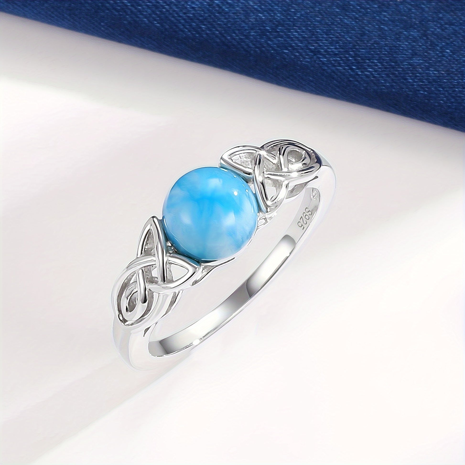 7mm Round Larimar Rings for Women Men, 925 Sterling Sliver Celtic Knot Rings Band Blue Faux Jewelry Gifts Wedding Engagement Luxury #5/6/7/8/9/10, Wedding Ring Set, Engagement Ring, Holiday Gift, Stylish Accessory, Elegant Je