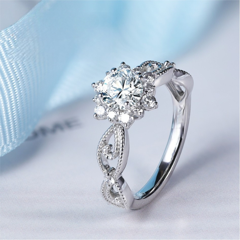 925 pure Silvery moissanite snowflake-shaped Women's fashion ring, dreamy luxury, elegant and generous, suitable for banquets, weddings, daily wear, vacation, dating, suitable for Thanksgiving, Christmas and Halloween gifts,