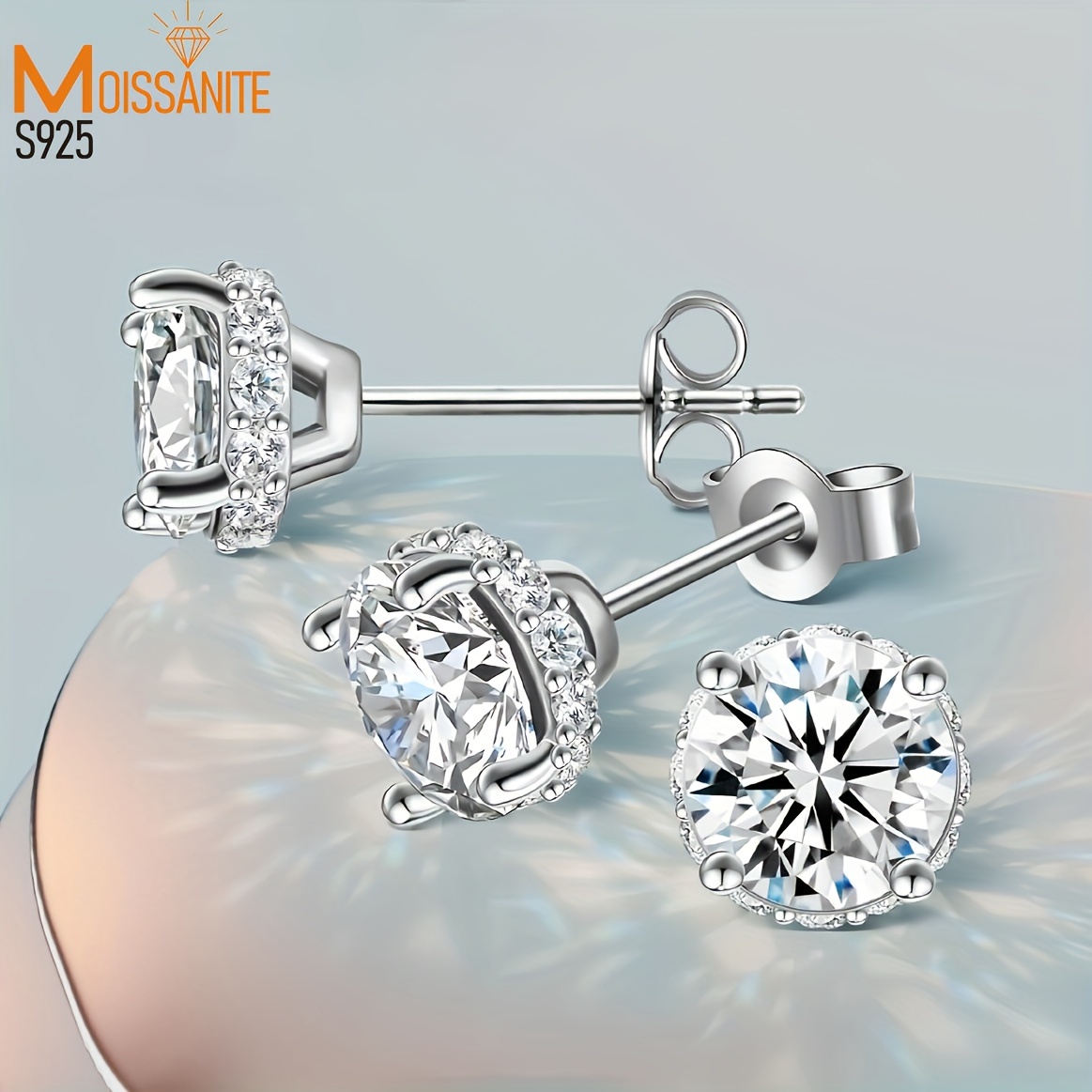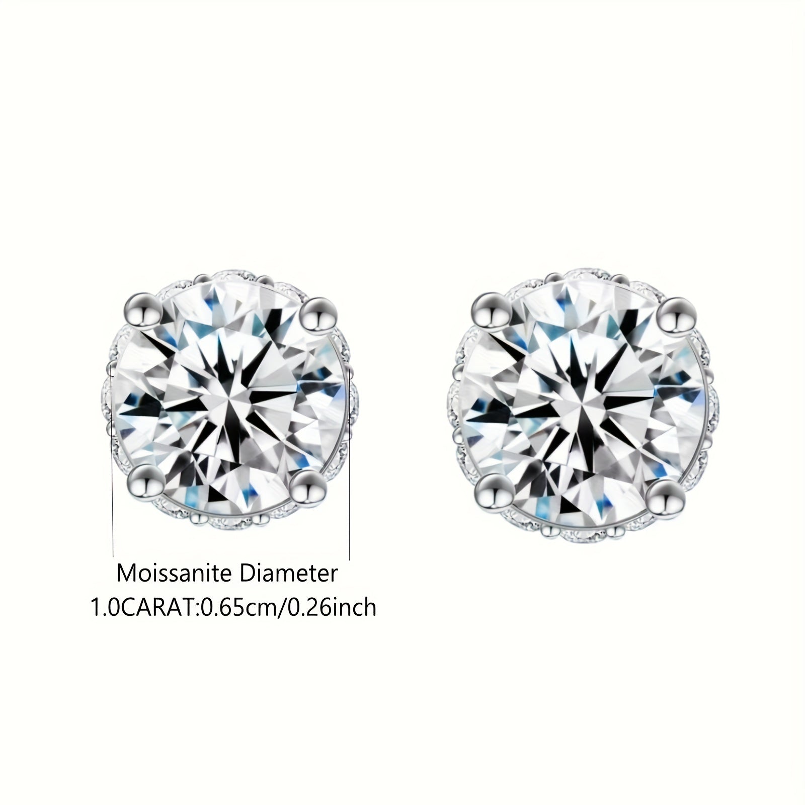 925 Silver 1Carat* 2pcs Moissanite Earrings Teenager'S Moissanite Jewelry, Silvery Earrings, High-Quality Fashion Studs For Teenager For Vacation Engagement, Wedding, Anniversary Gifts Perfect For Friends Christmas #Halloween