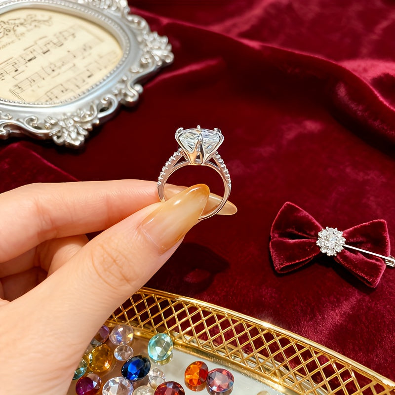 925 Silver Sparkling 5 Carat Moissanite Wedding And Engagement Rings Jewelry Elements Design Personality Women's Fashion Glamorous Bachelor Party Perfect For Everyday Occasions, Carnivals And Any Season Halloween Christmas Gi