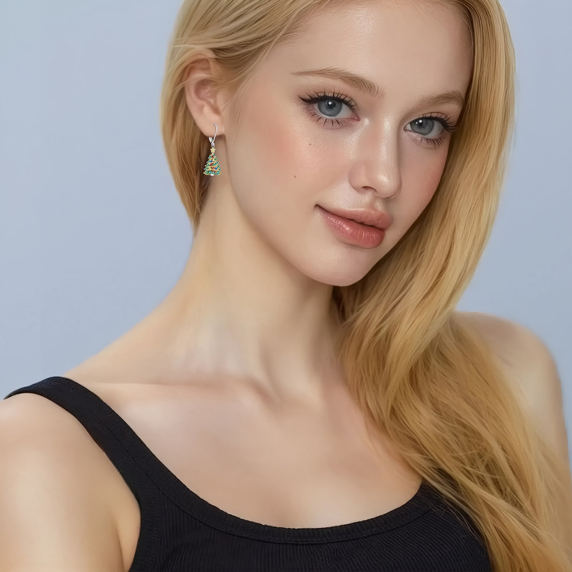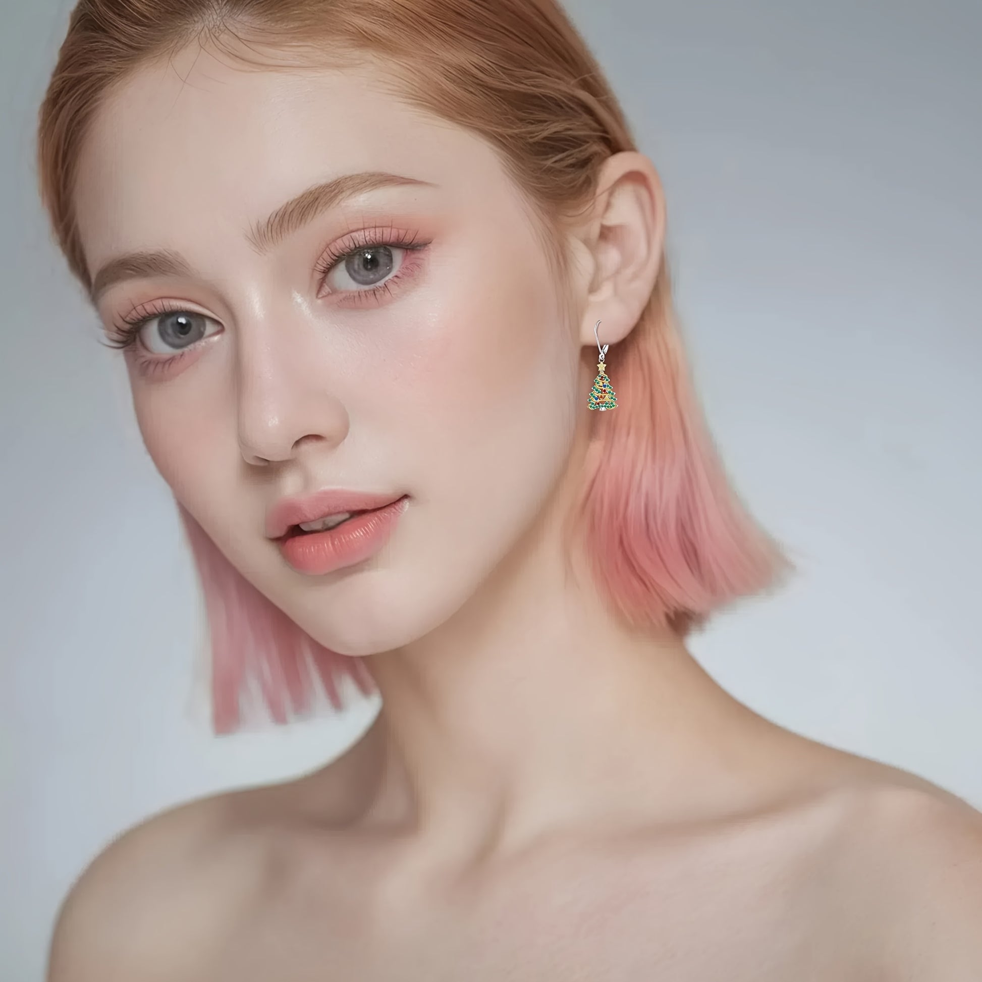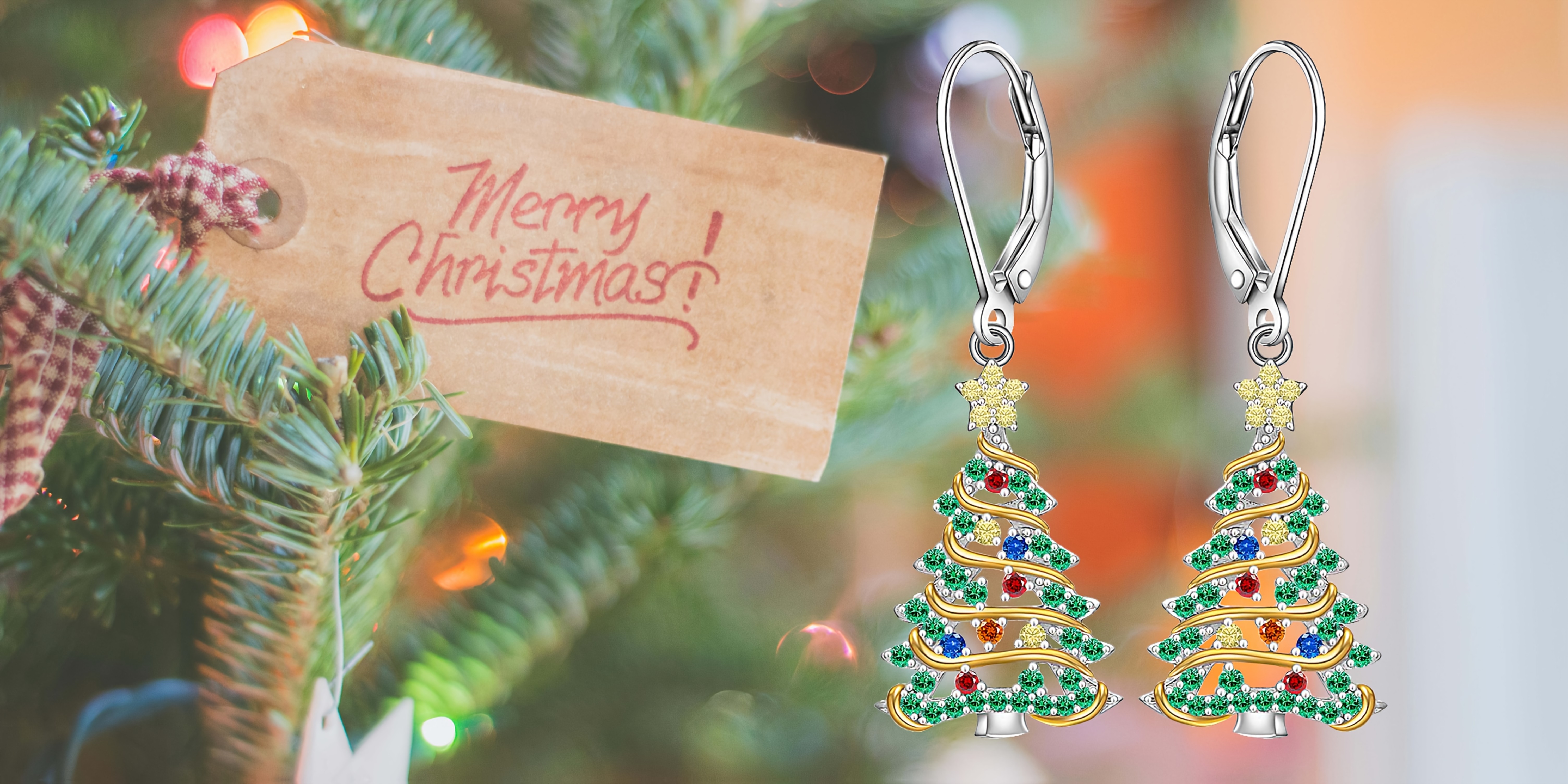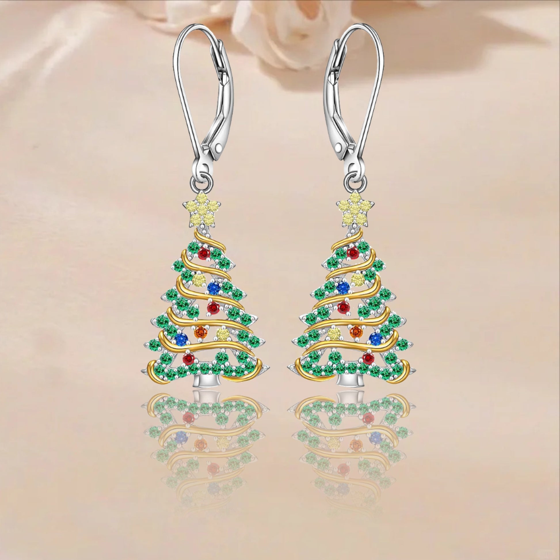 925 Sterling Silver Christmas Tree Earrings, Christmas Earrings Women Silver Ribbon, Green Christmas Tree Colorful Zirconia Frozen Earrings Earrings Holiday Jewelry Gifts for Women