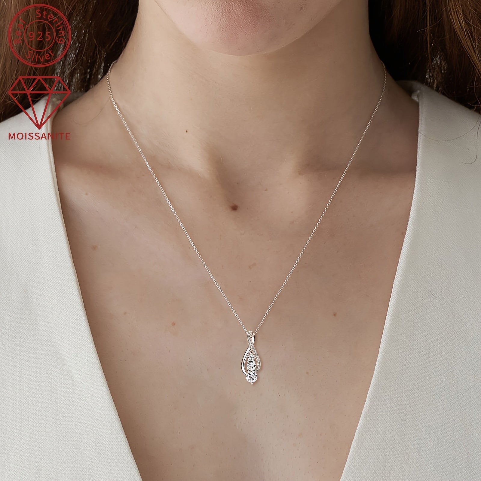 925 Sterling Silver Infinity Symbol Pendant Necklace for Women - Elegant Y-Shaped Design with Sparkling Moissanite Stones, 45+5cm/18+2in, Perfect for Weddings, Anniversaries & Festive Occasions, Festive Jewelry | Sparkling Pe