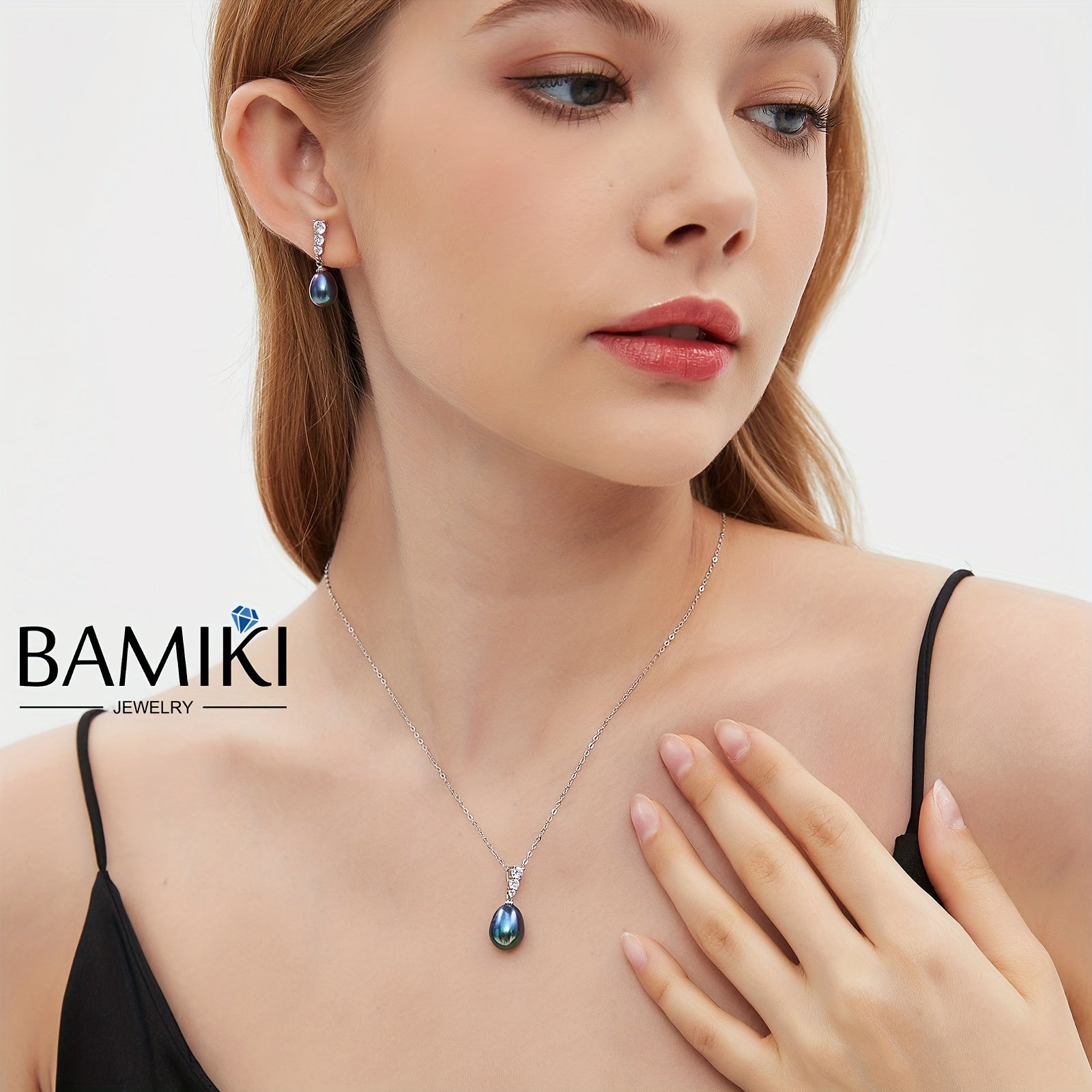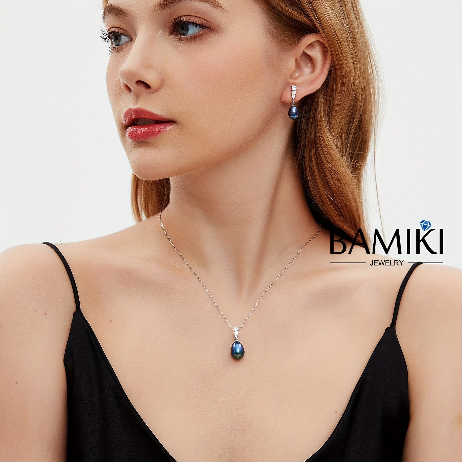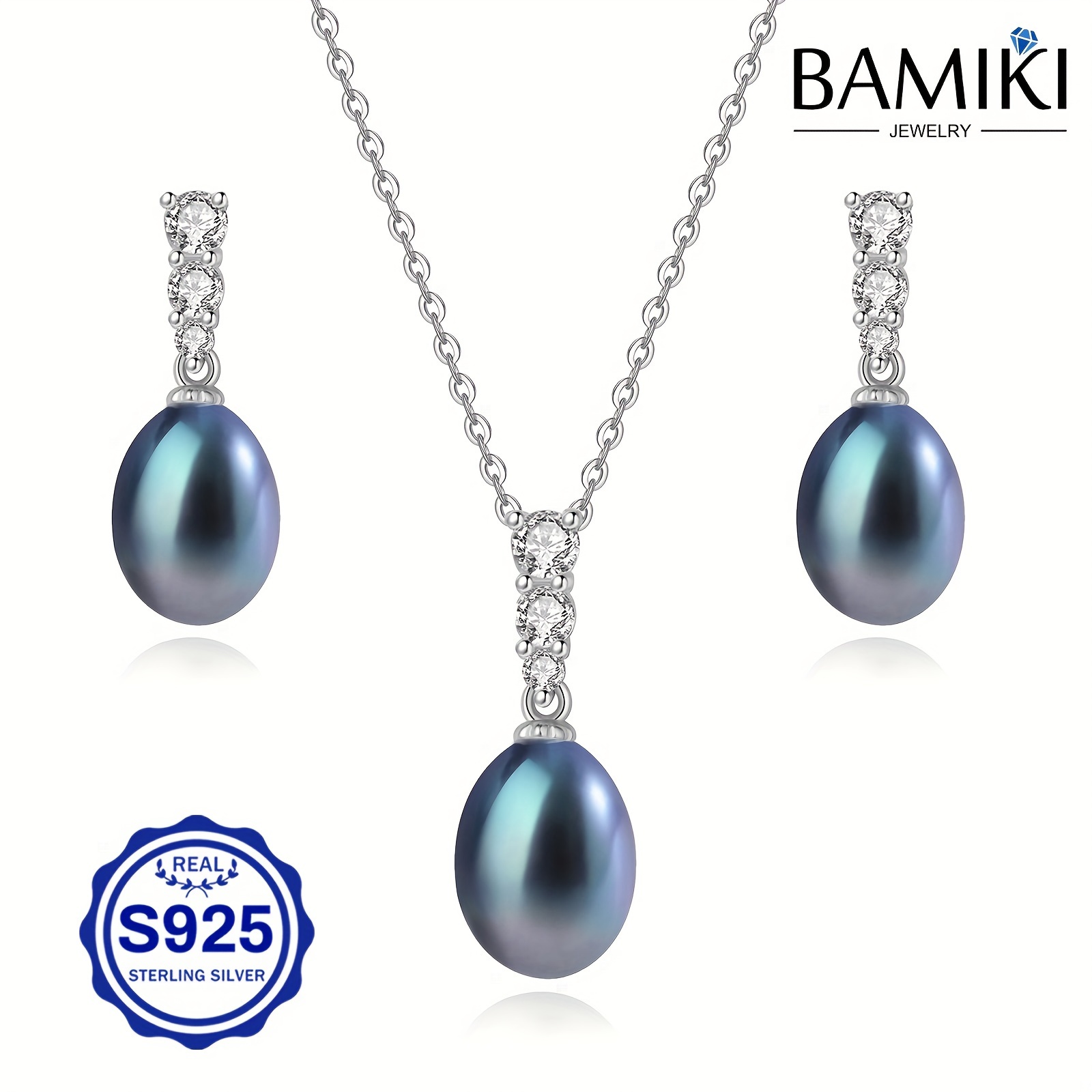 925 Sterling Silver Natural Seawater Pearl Pearl Necklace And Earrings Set 9-10MM