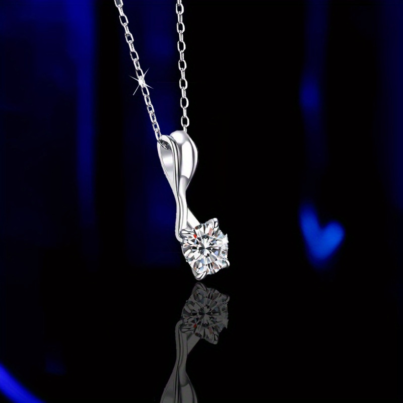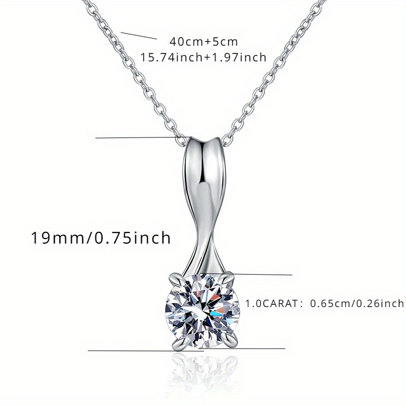 925 Sterling Silvery 1 Carat Moissanite, Rotating Bow Pendant Necklace, Fashion Design Classic Style, Birthday Anniversary Valentine's Day Gift Jewelry for Daily Wear with Gift Box, Approx. 3g
