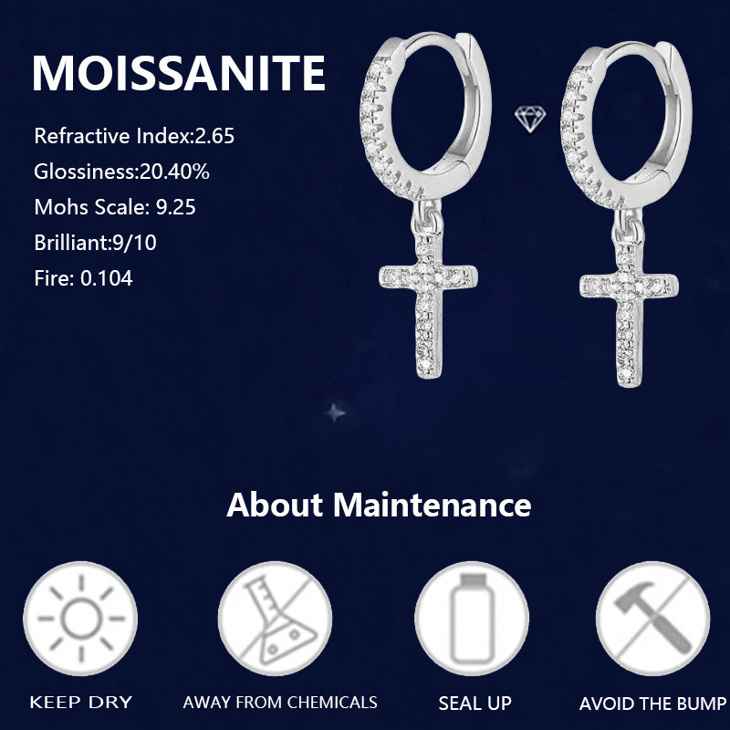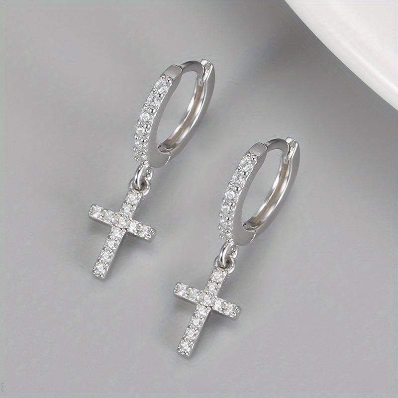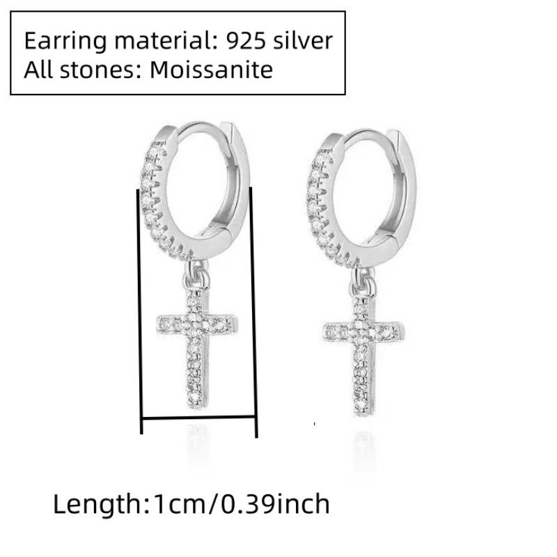 925 Sterling Silvery Full Moissanite Earrings*2, Cross Earrings, Simple And Versatile, Suitable for Daily Wear, Dating, Party, Vacation, Valentine'S Day Gift for Women, Thanksgiving Gift, New Year Gift Jewelry, with Gift Box