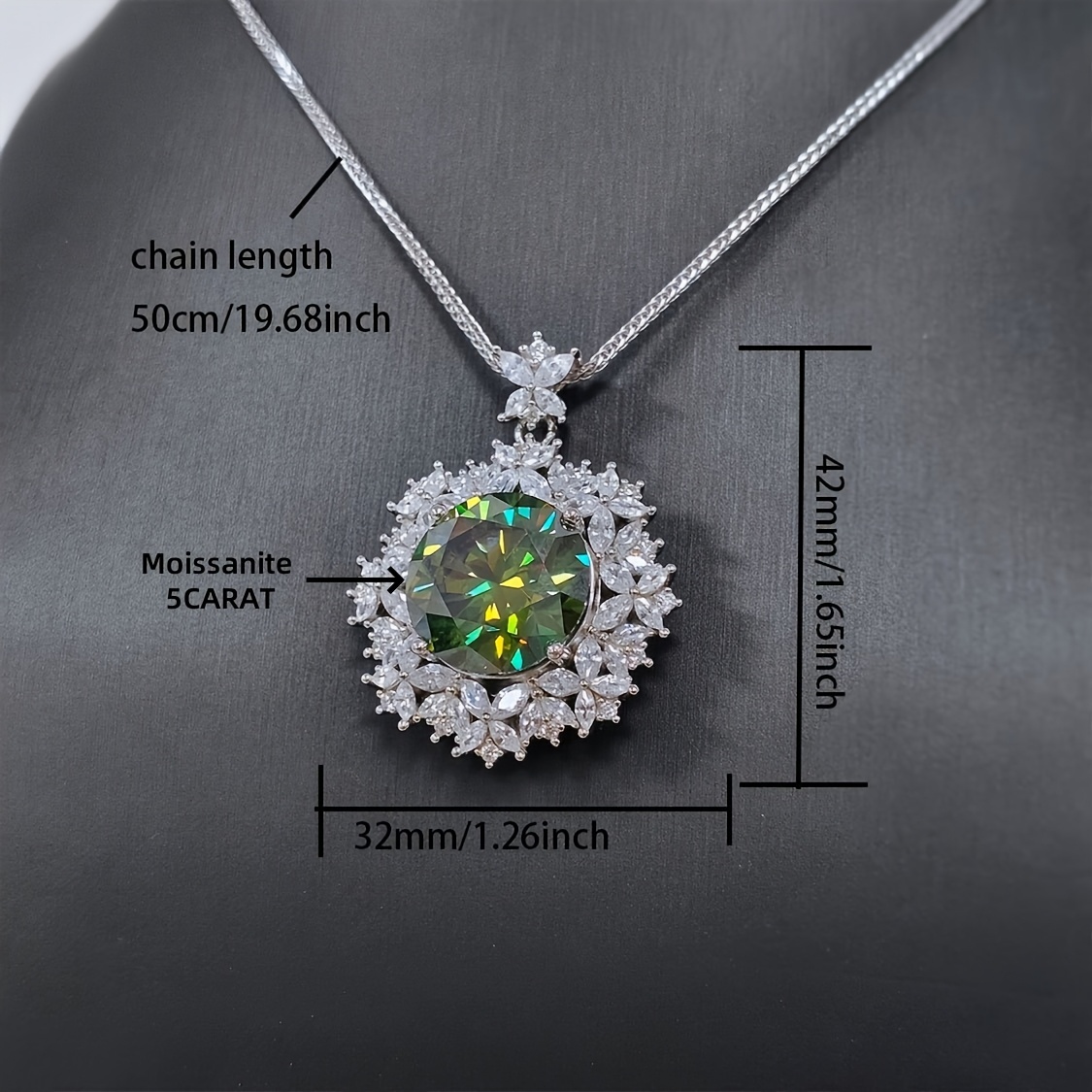A 925 Silver 11.0mm*1 Round Large Moissanite 5-carat Pendant Necklace, Weighing Approximately 9.3g, Is Elegant And Fashionable. It Is Perfect for Family Banquets, Anniversary Parties, And As A Perfect Gift for Family And Frie