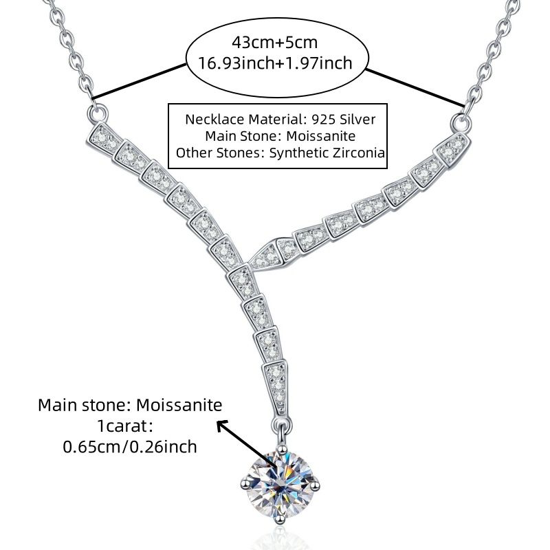 A 925 silvery 1 carat Moissanite 14K Golden plated V-shaped necklace, a versatile snake couple pendant necklace and clavicle chain, suitable for daily wear and Christmas, Halloween, Valentine's Day, birthday and New Year gift