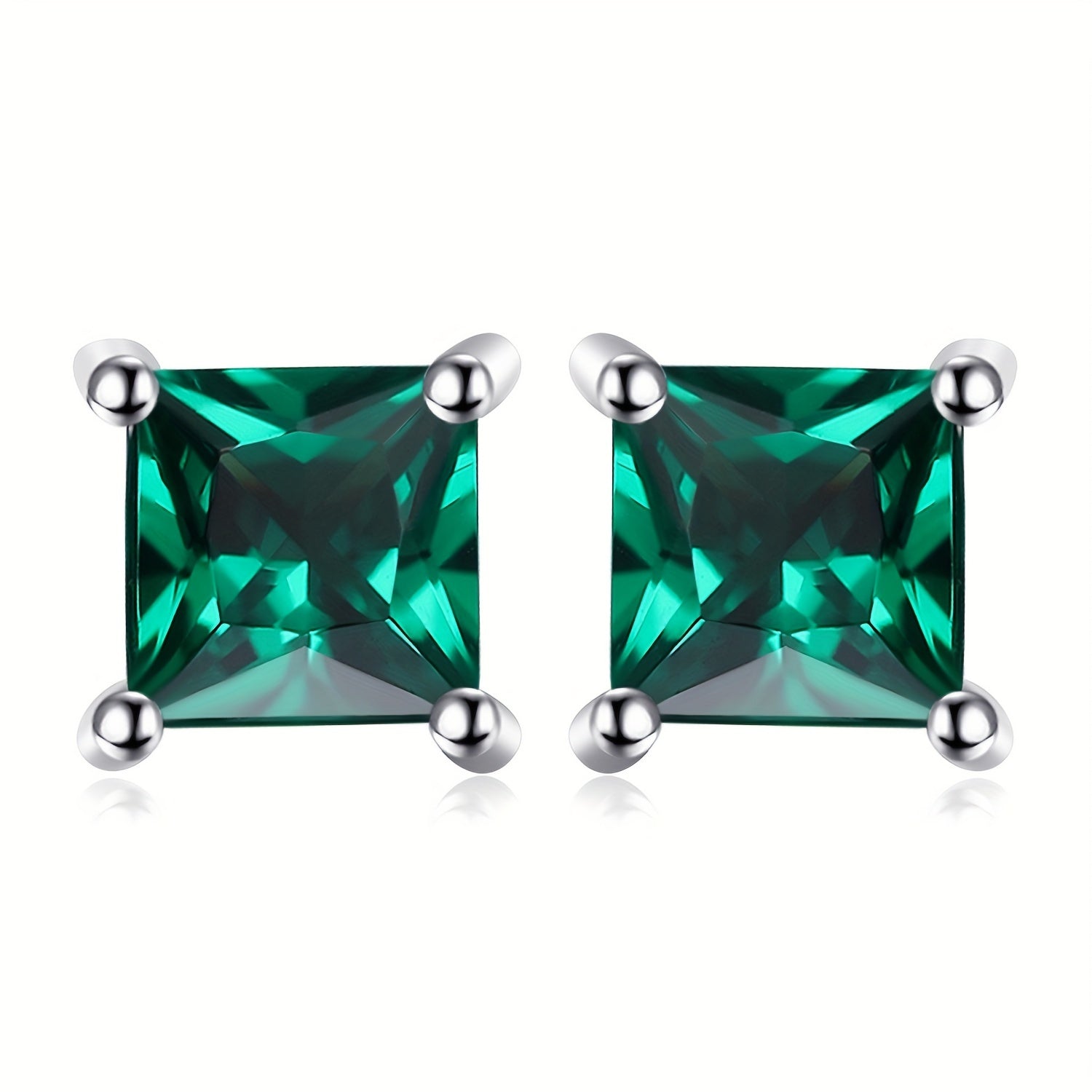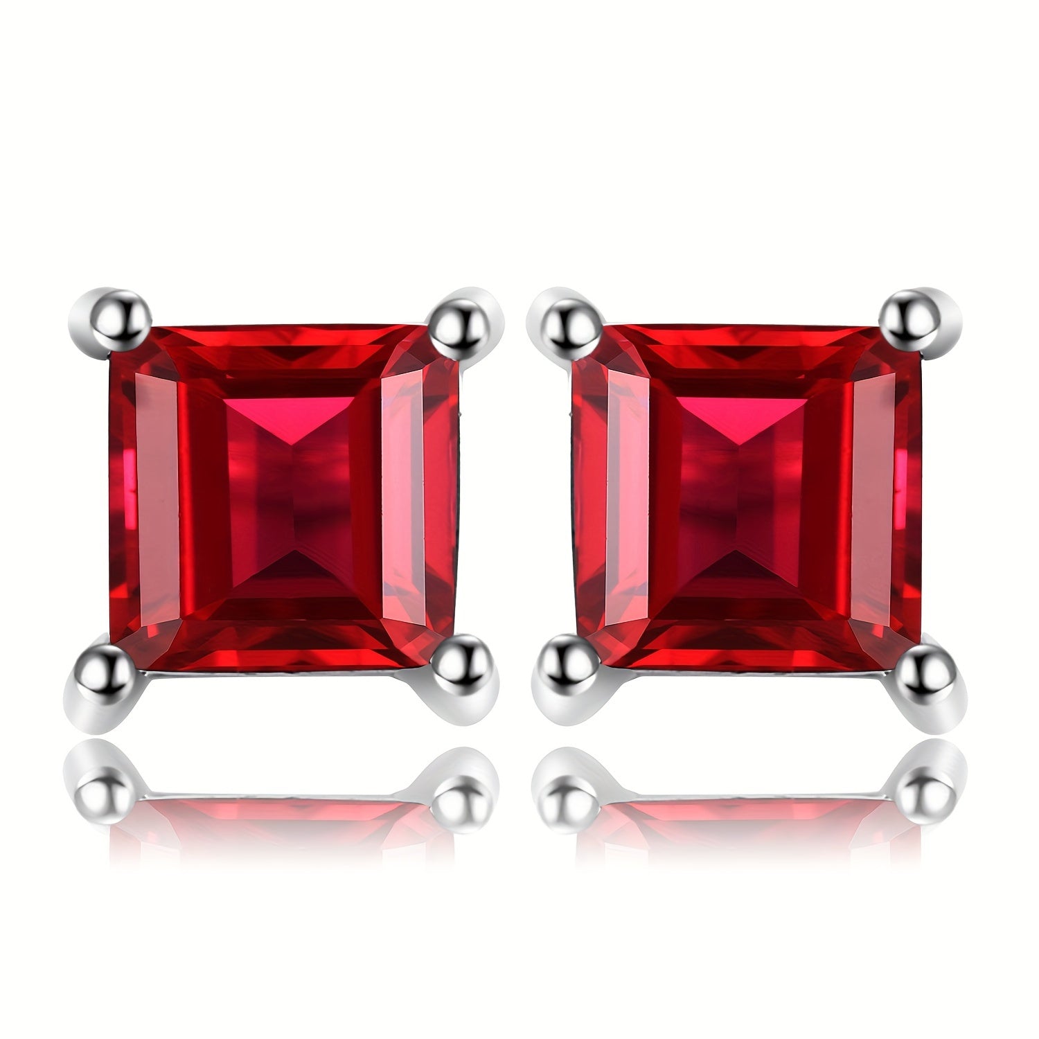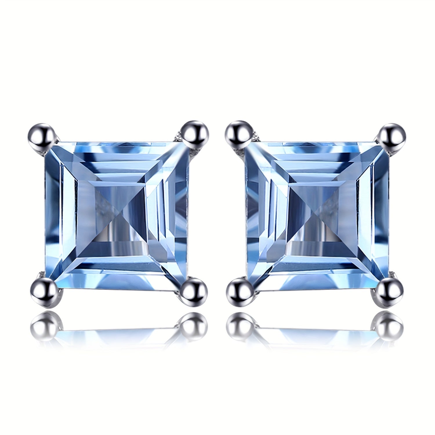 A Pair of 925 Sterling Silver Stud Earrings Featuring a Simple Yet Elegant Classic Design, Adorned with Exquisite Multi-Faceted Square Cut Natural Gemstones Including Amethyst, Citrine, Garnet, Peridot, Topaz, Created, Sapphi