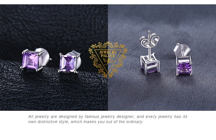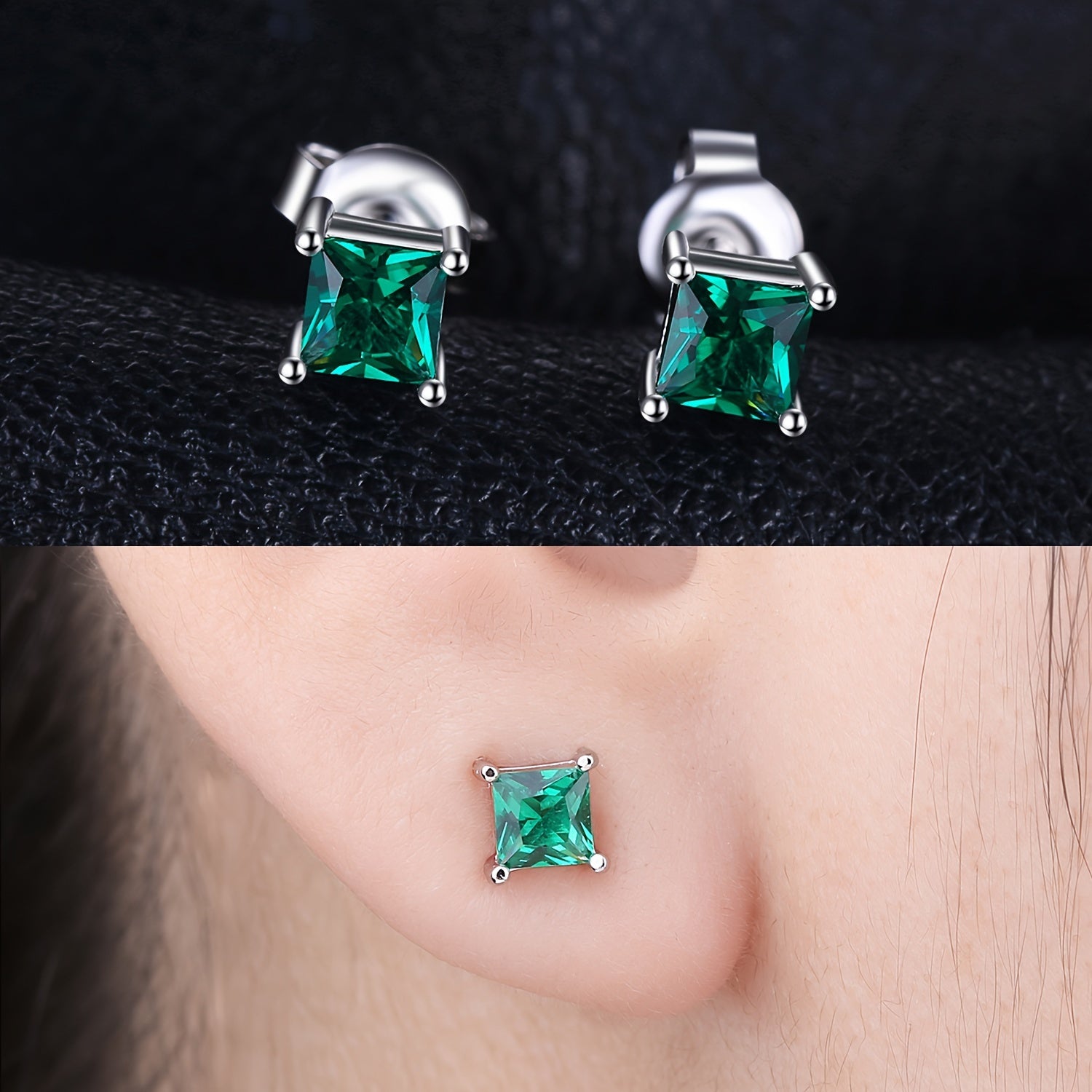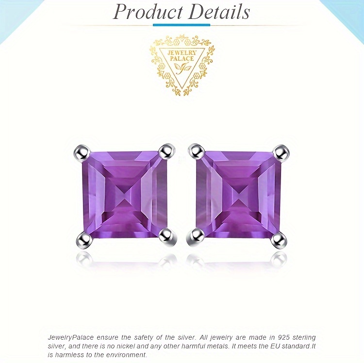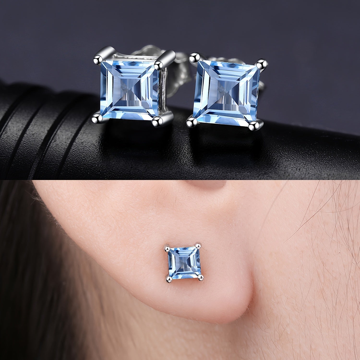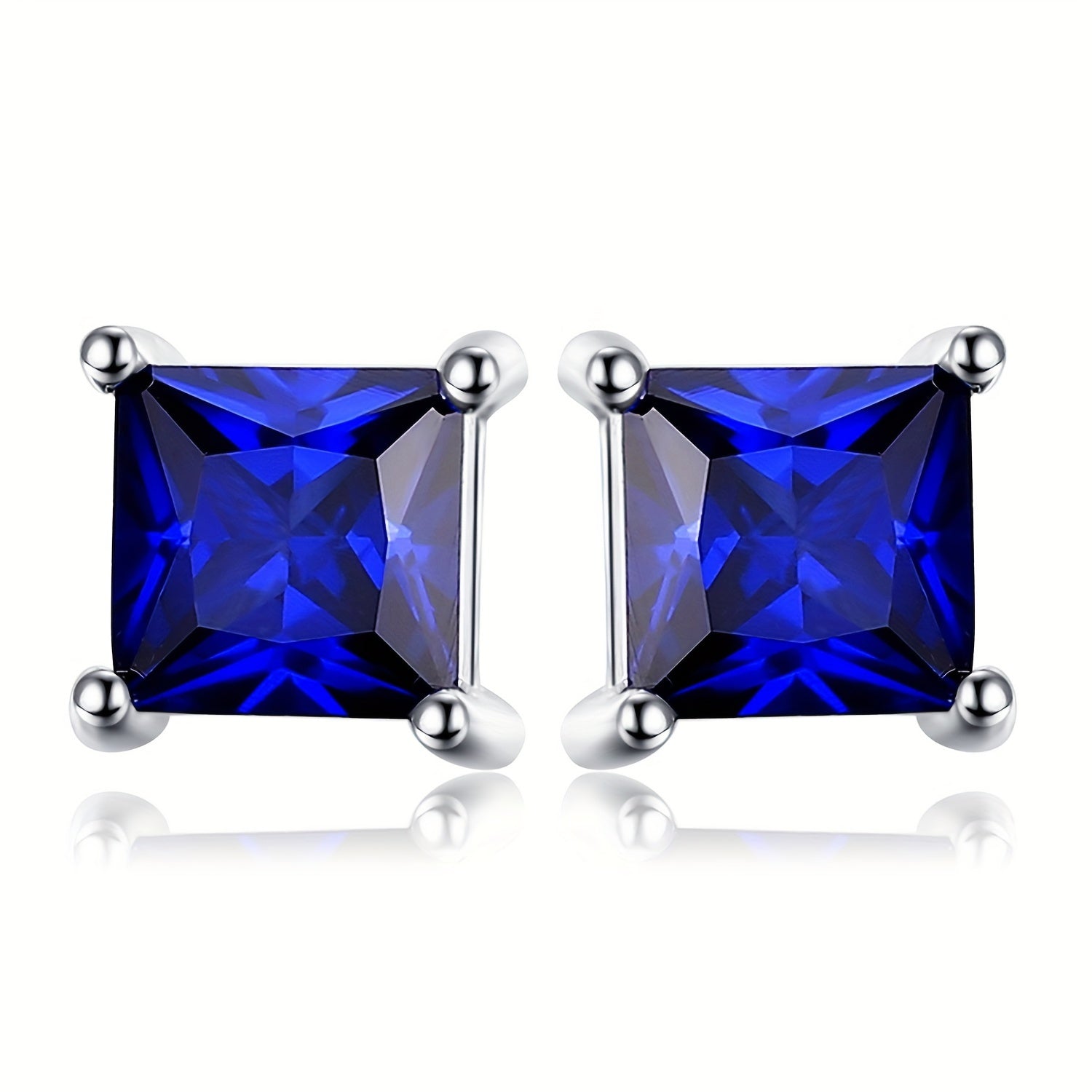 A Pair of 925 Sterling Silver Stud Earrings Featuring a Simple Yet Elegant Classic Design, Adorned with Exquisite Multi-Faceted Square Cut Natural Gemstones Including Amethyst, Citrine, Garnet, Peridot, Topaz, Created, Sapphi