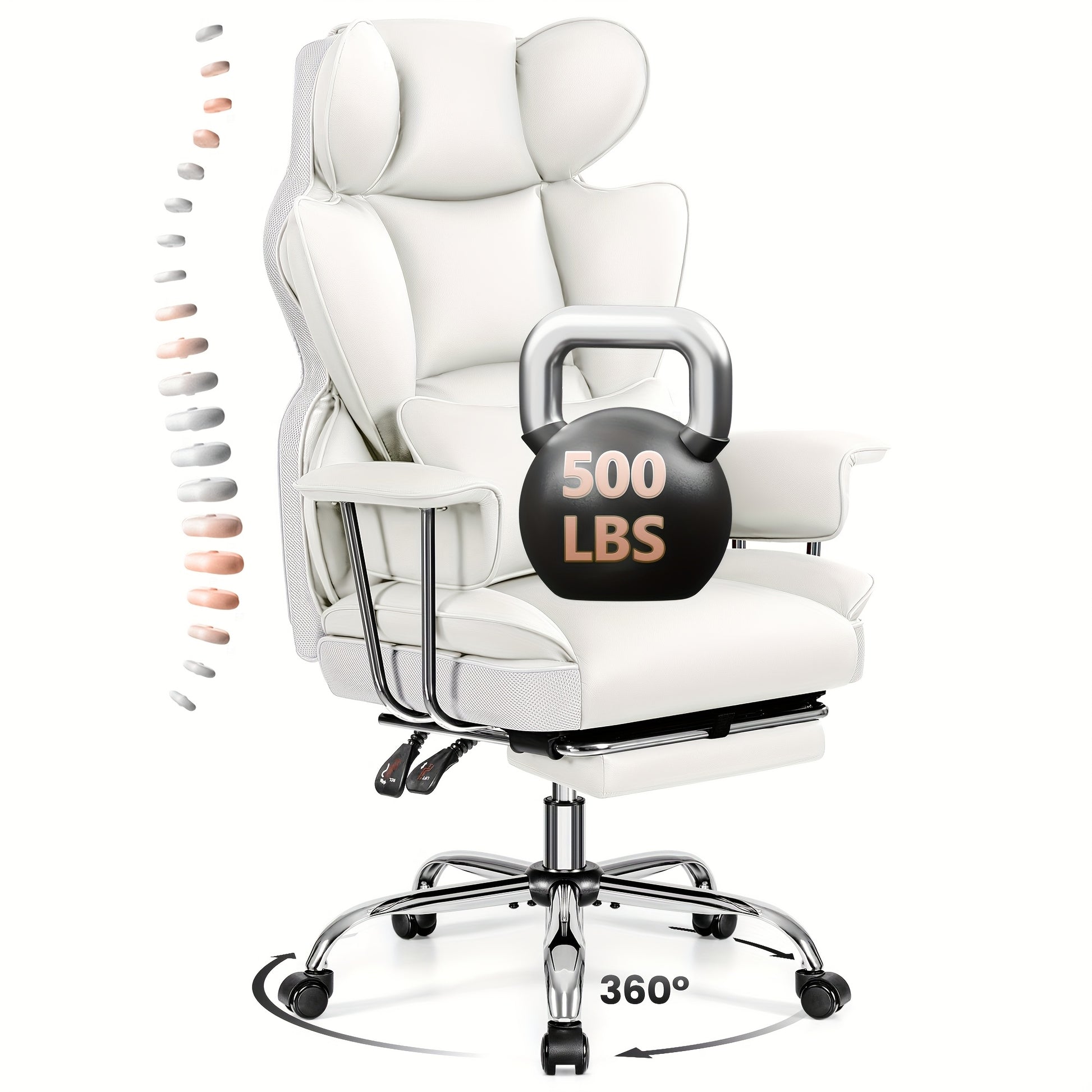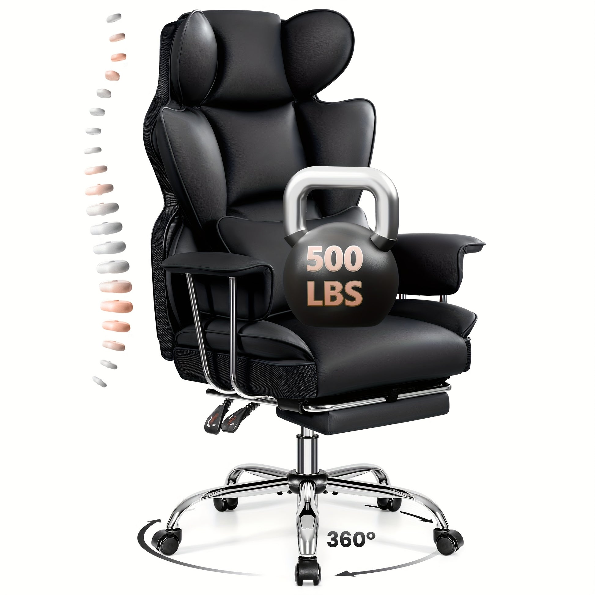 Actflame 500LBS Big And Tall Ergonomic Office Chair- Executive High-Back Leather Office Desk Chair for Plus-Size Users with Lumbar Support& Footrest- Perfect for Home Office | Back to School