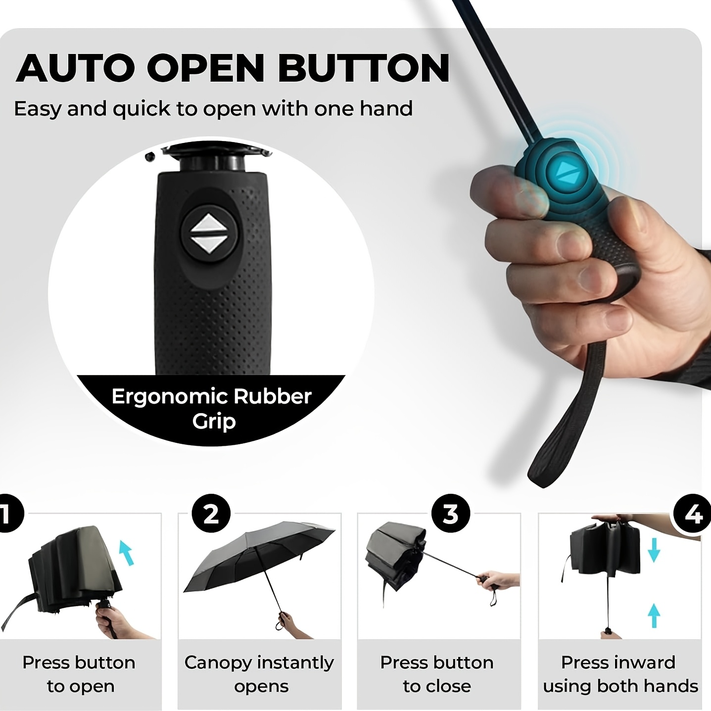 Automatic Open/Close Windproof Compact Travel Umbrella with UPF 50+ Sun/, Lightweight Portable Automatic Umbrella Suitable for All-Season, Shield &, Carry Sleeve, 10 Fiberglass Ribs & 210T Pongee Canopy